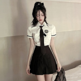 Летняя рубашка, приталенная студенческая юбка в складку, комплект, высокая талия