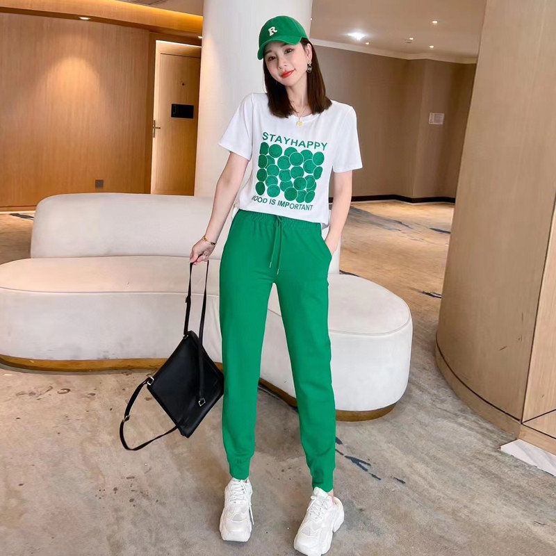 Штаны, летний комплект, спортивный костюм, в корейском стиле, популярно в интернете