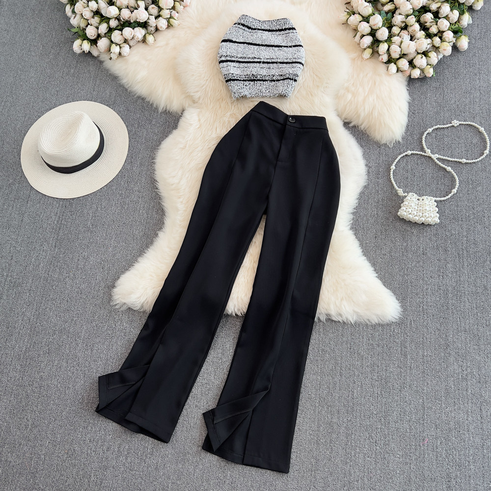 Комплект, короткий топ без лямок, штаны, облегающий крой, высокая талия, свободный крой