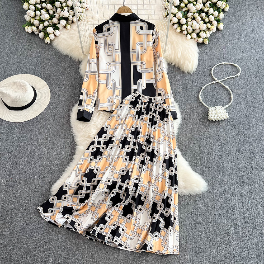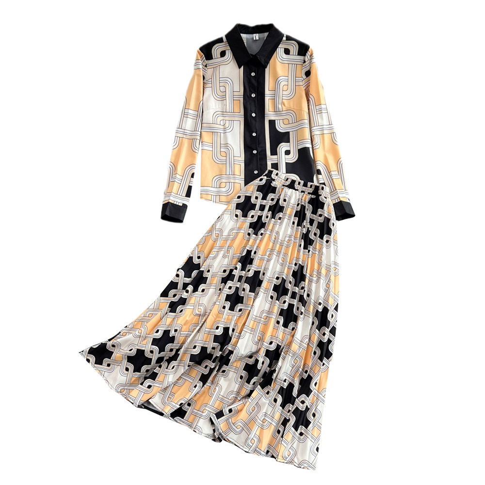 Комплект, рубашка, длинная юбка в складку, высокая талия