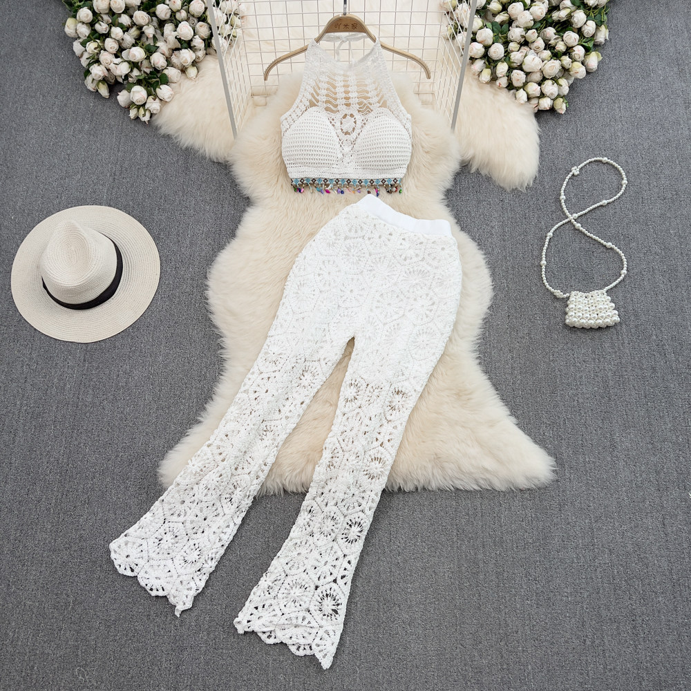 Комплект, майка топ, приталенные штаны-клёш, штаны, высокая талия