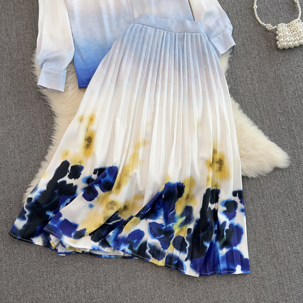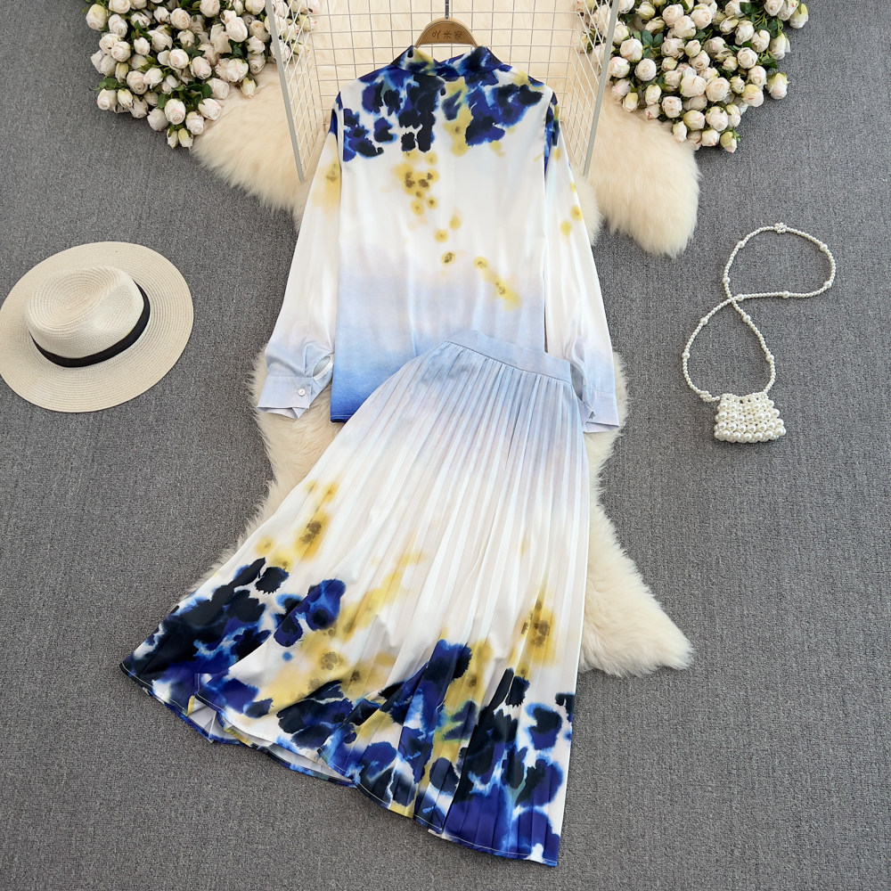 Комплект, приталенная рубашка, длинная юбка, средней длины