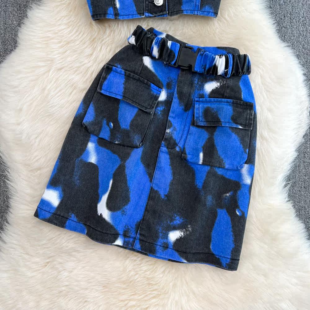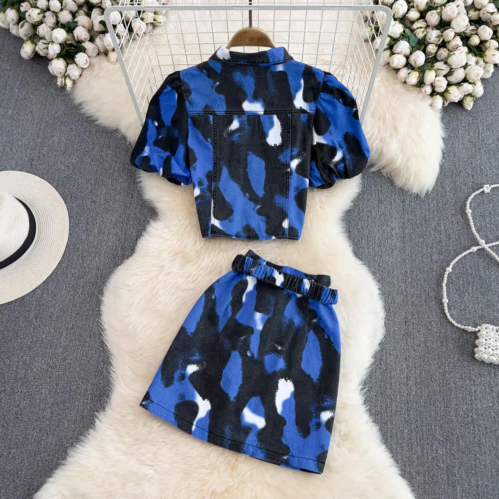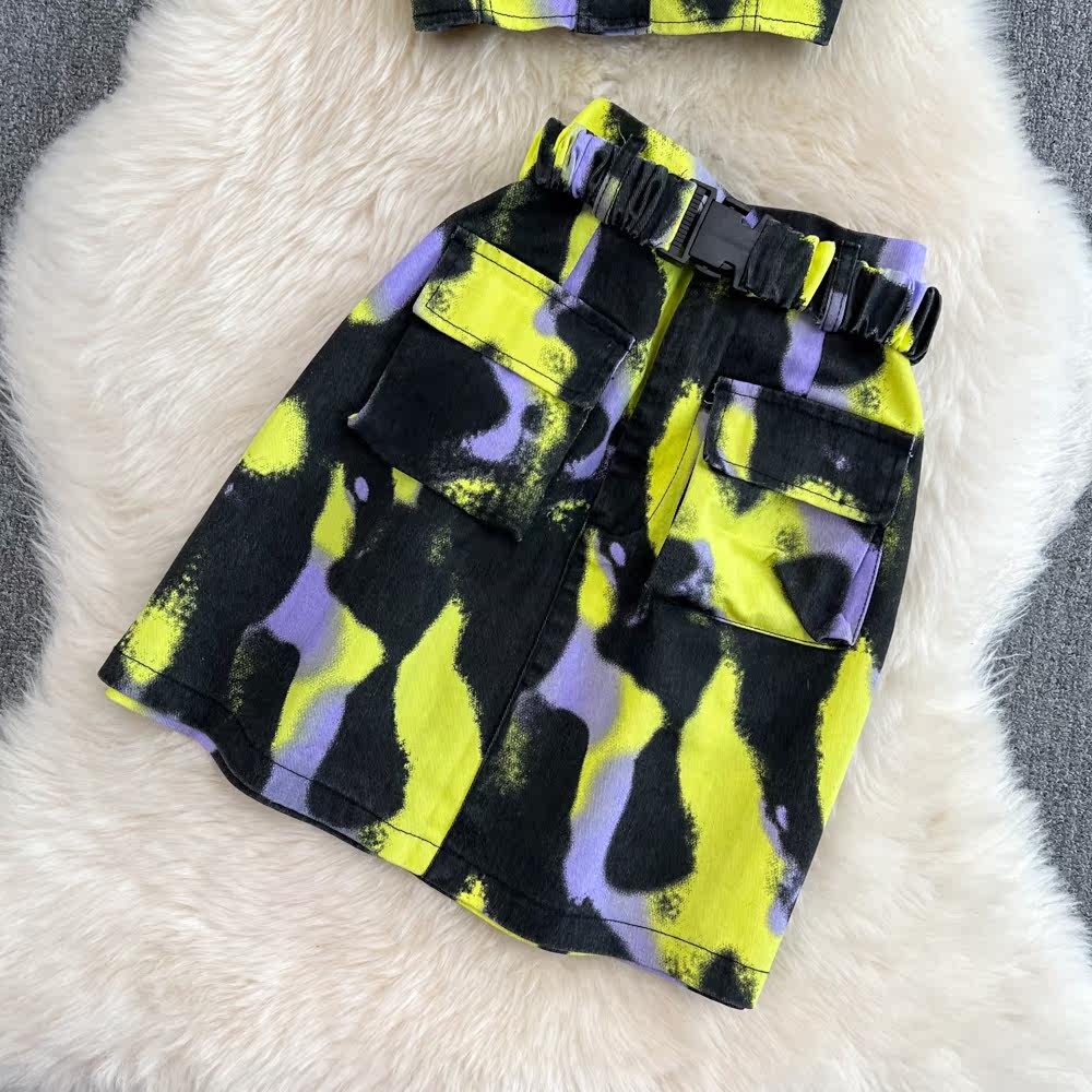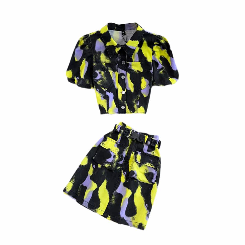 Комплект, короткая рубашка, поясная сумка, юбка, воротник поло, короткий рукав, с рукавом, высокая талия
