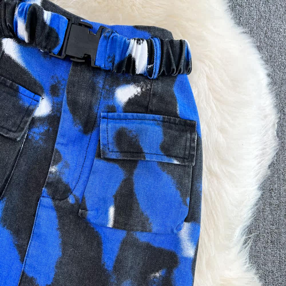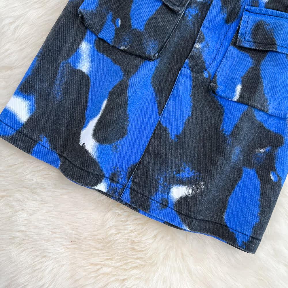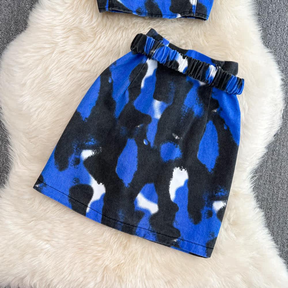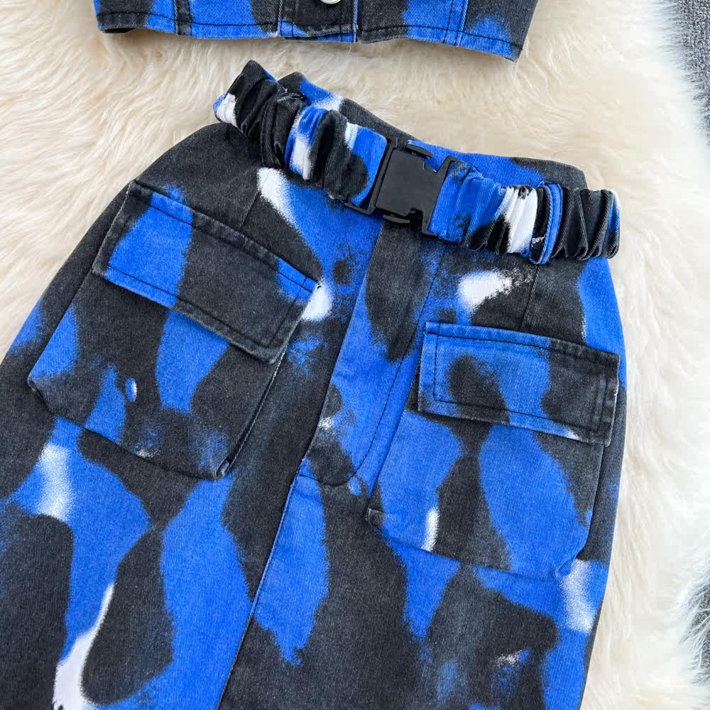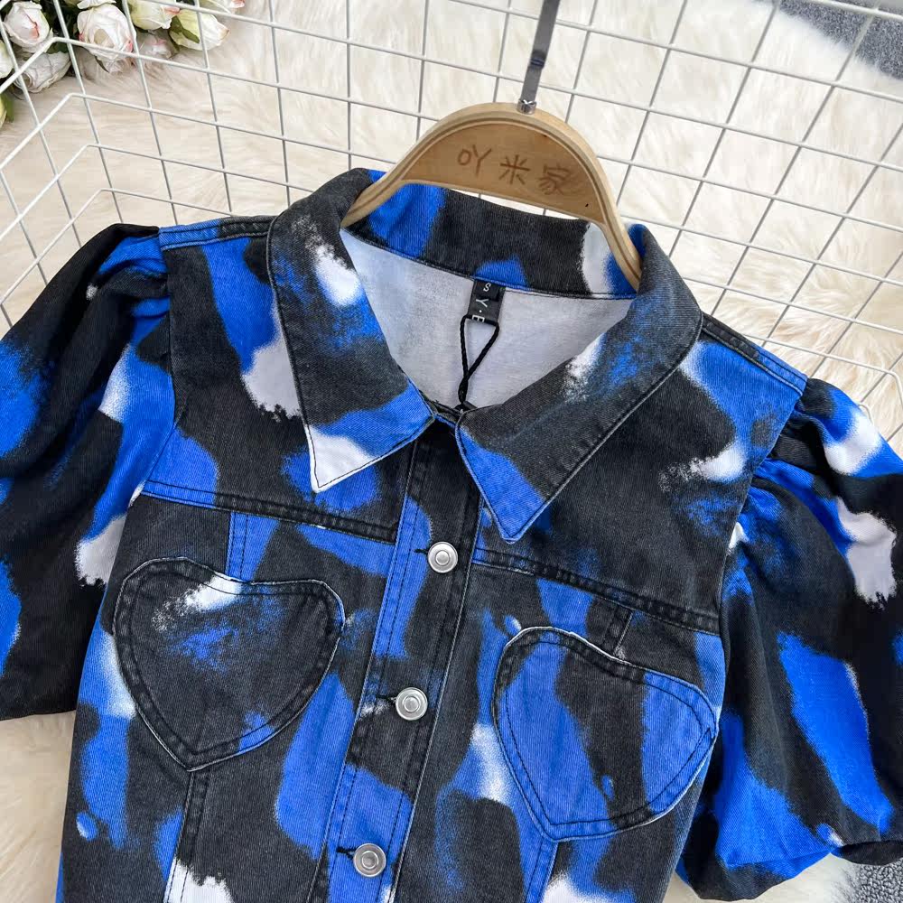 Комплект, короткая рубашка, поясная сумка, юбка, воротник поло, короткий рукав, с рукавом, высокая талия