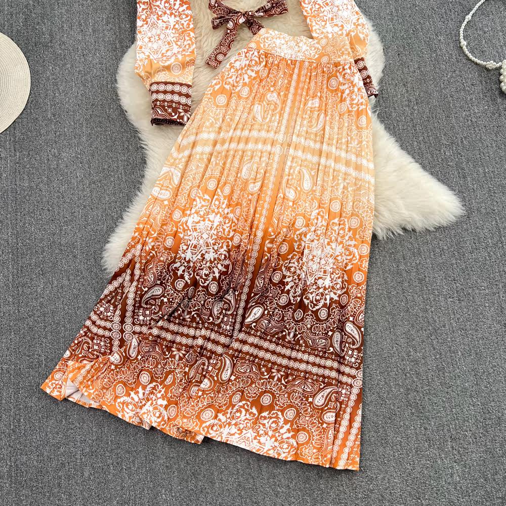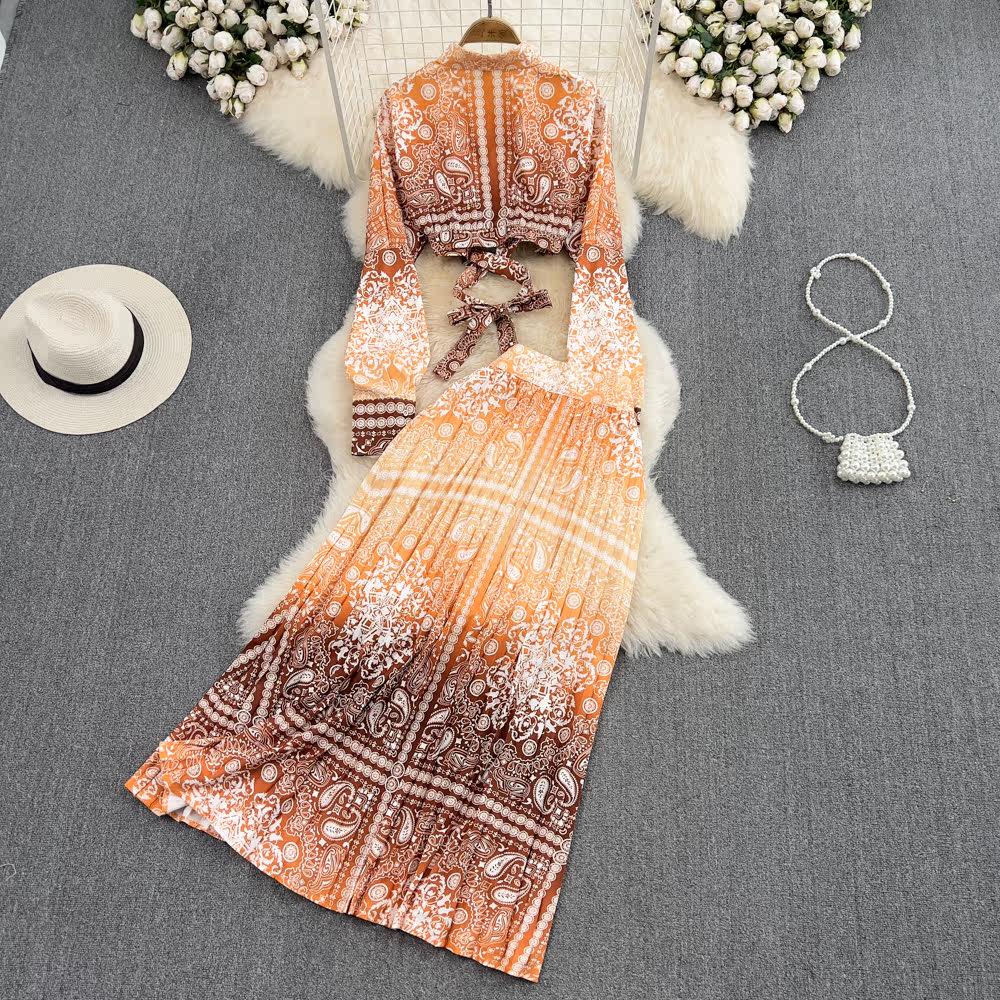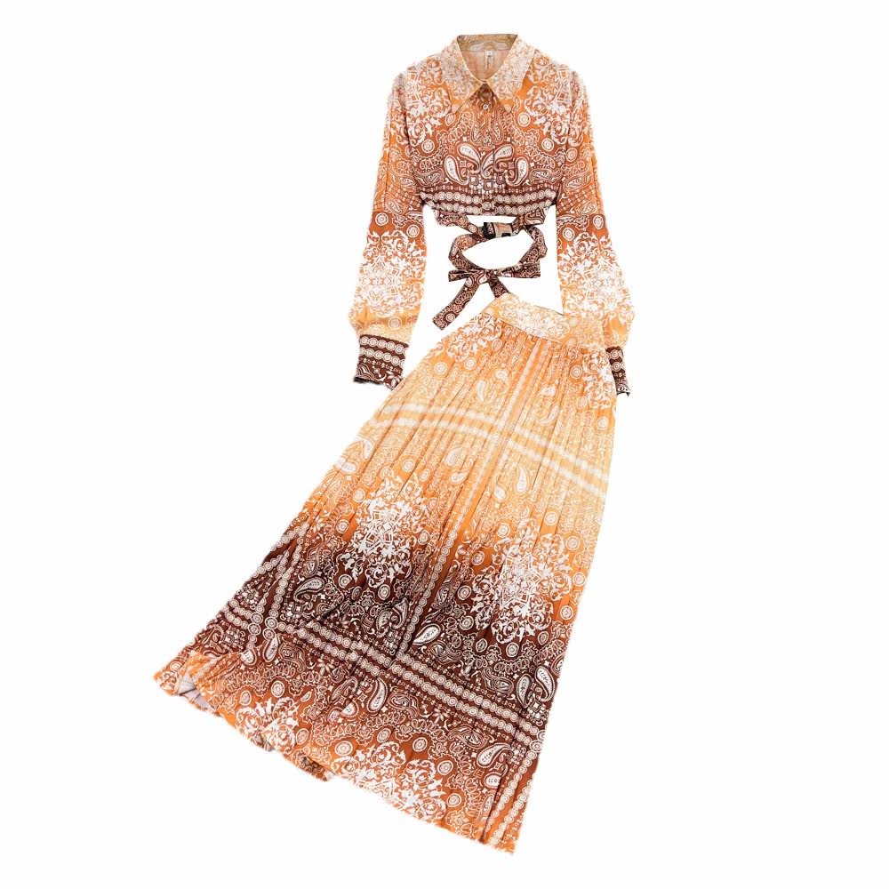 Комплект, короткая рубашка, юбка в складку, легкий роскошный стиль, градиент, высокая талия, А-силуэт