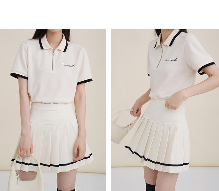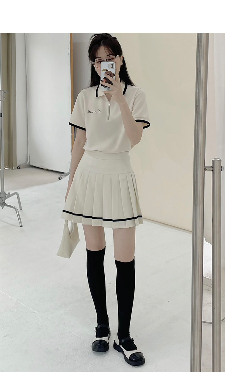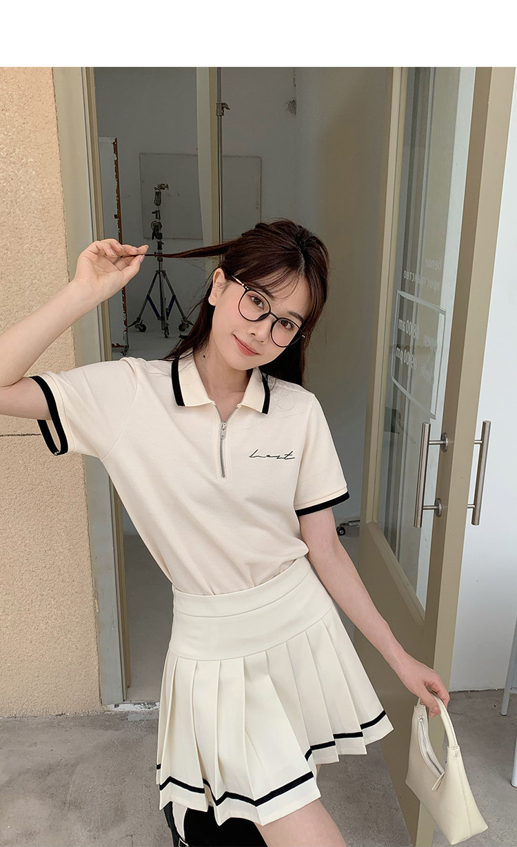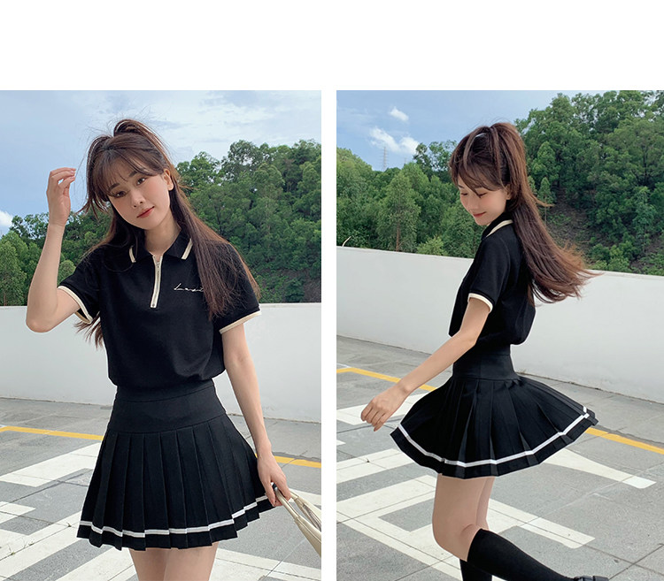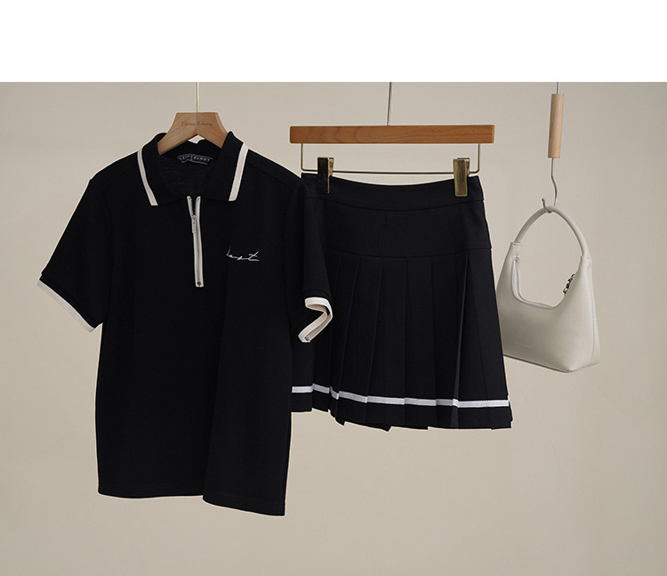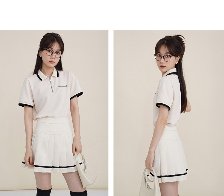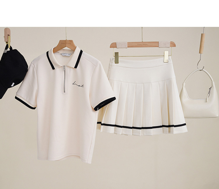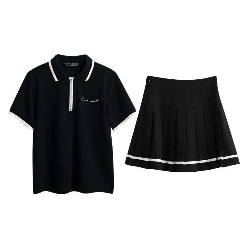 Мини-юбка, свежий комплект, футболка с коротким рукавом, юбка в складку, с вышивкой, воротник поло