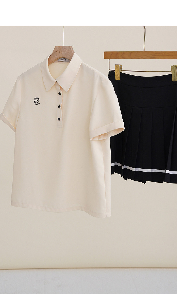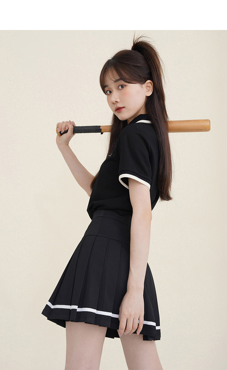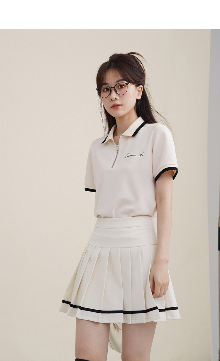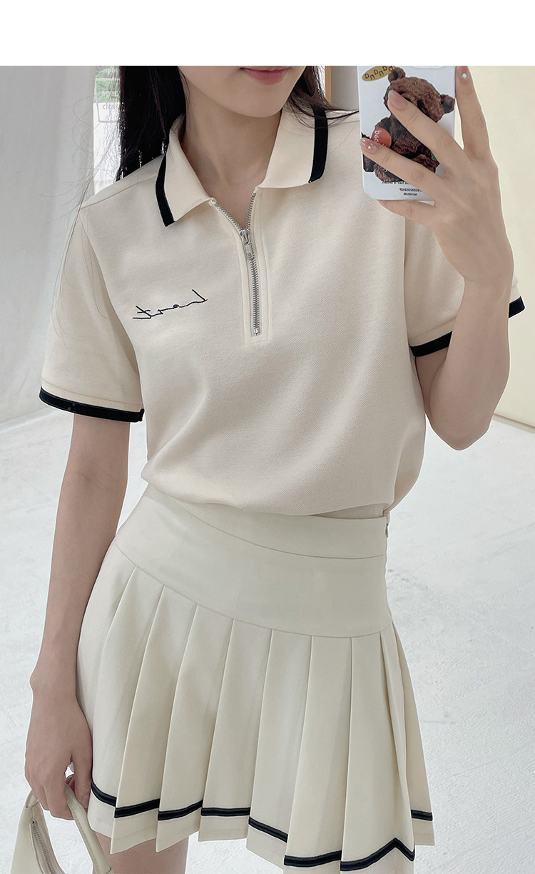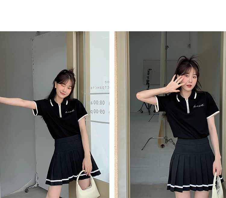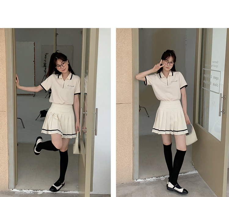 Мини-юбка, свежий комплект, футболка с коротким рукавом, юбка в складку, с вышивкой, воротник поло