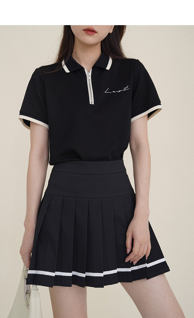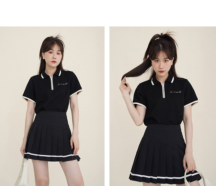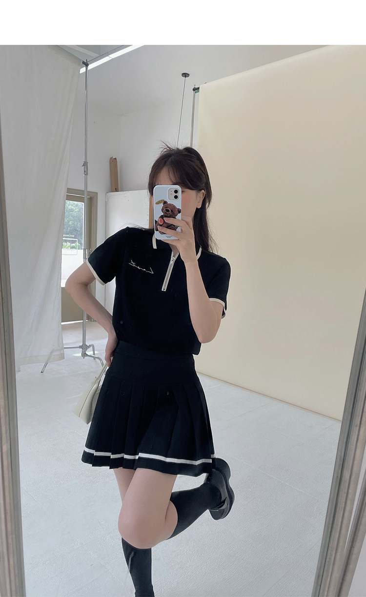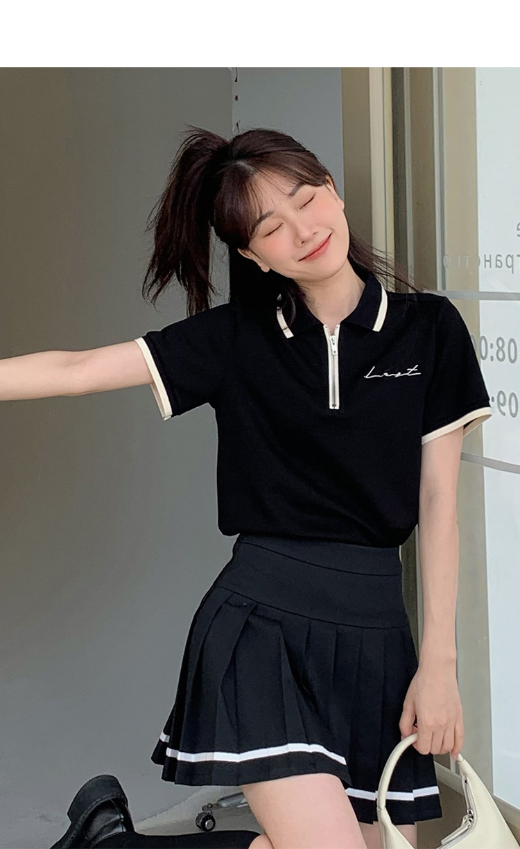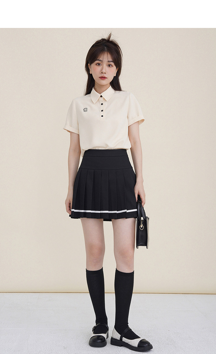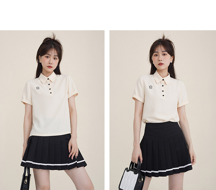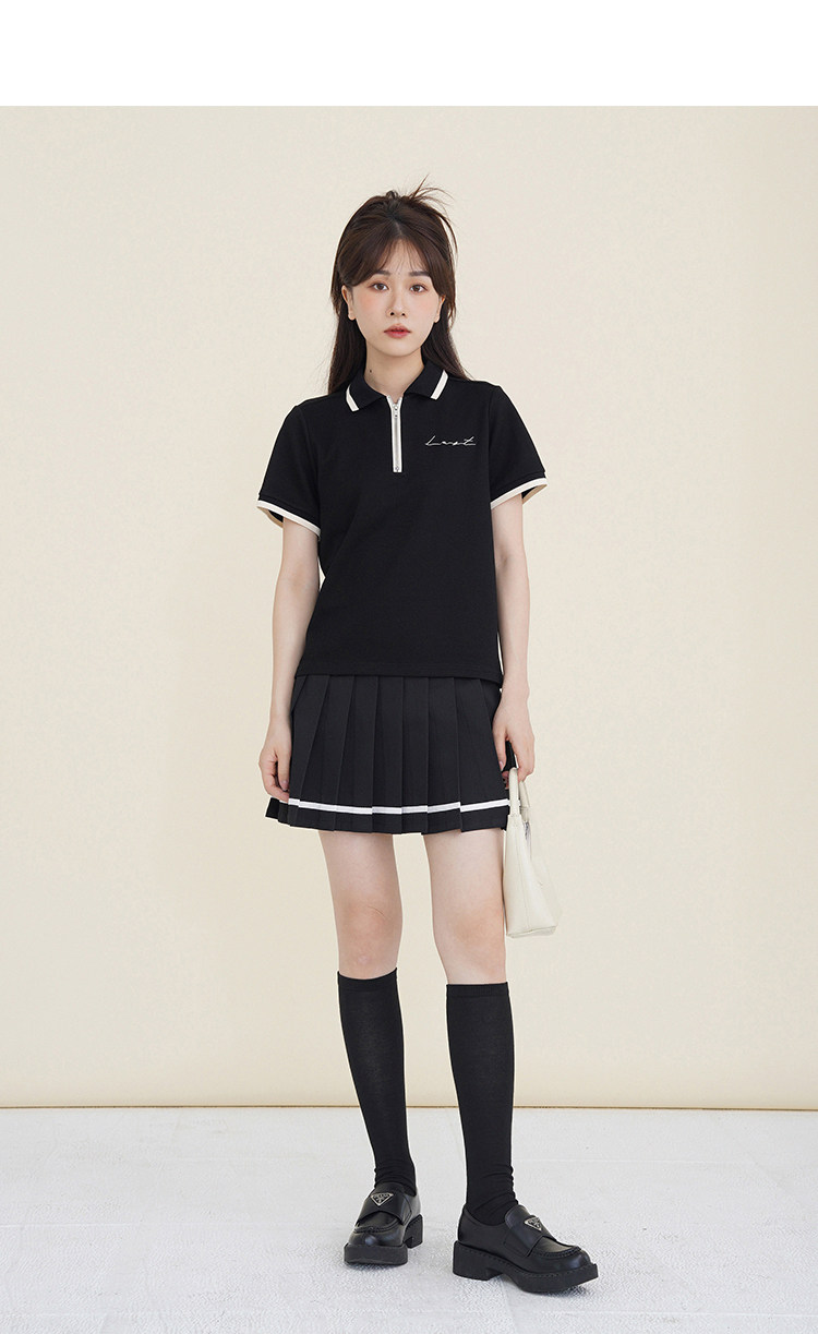 Мини-юбка, свежий комплект, футболка с коротким рукавом, юбка в складку, с вышивкой, воротник поло