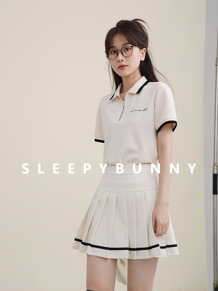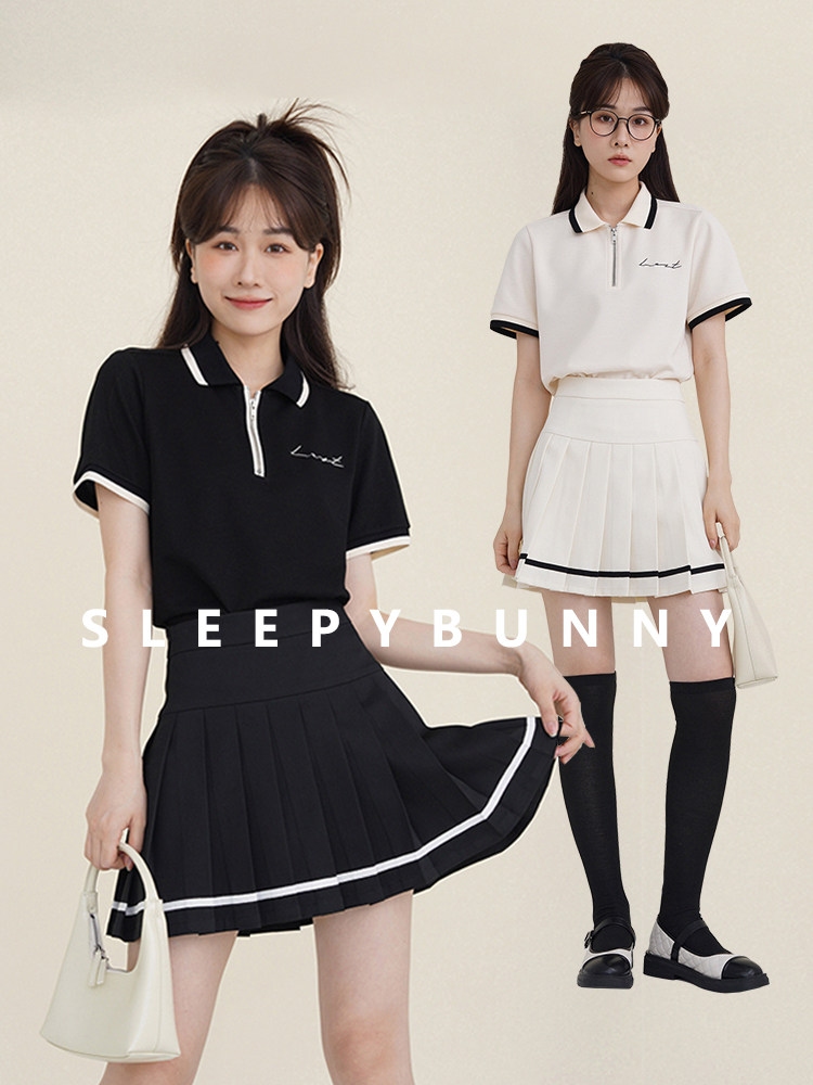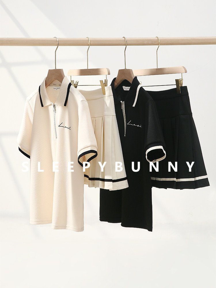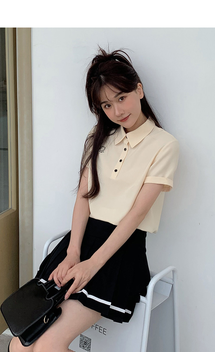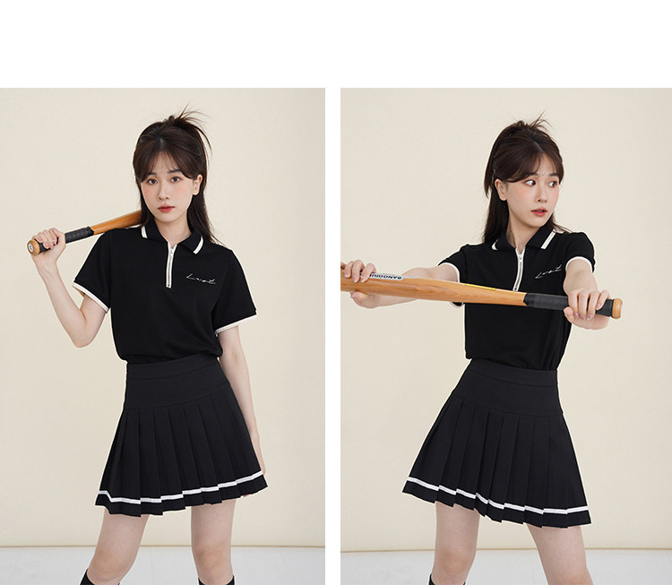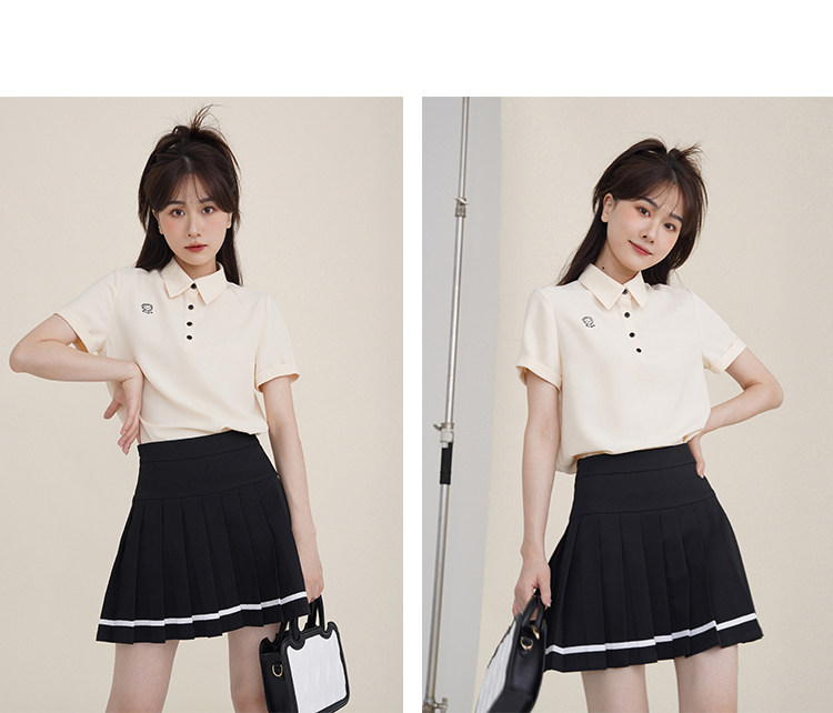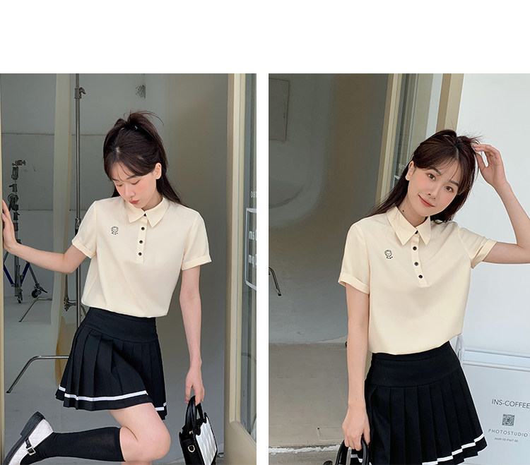 Мини-юбка, свежий комплект, футболка с коротким рукавом, юбка в складку, с вышивкой, воротник поло