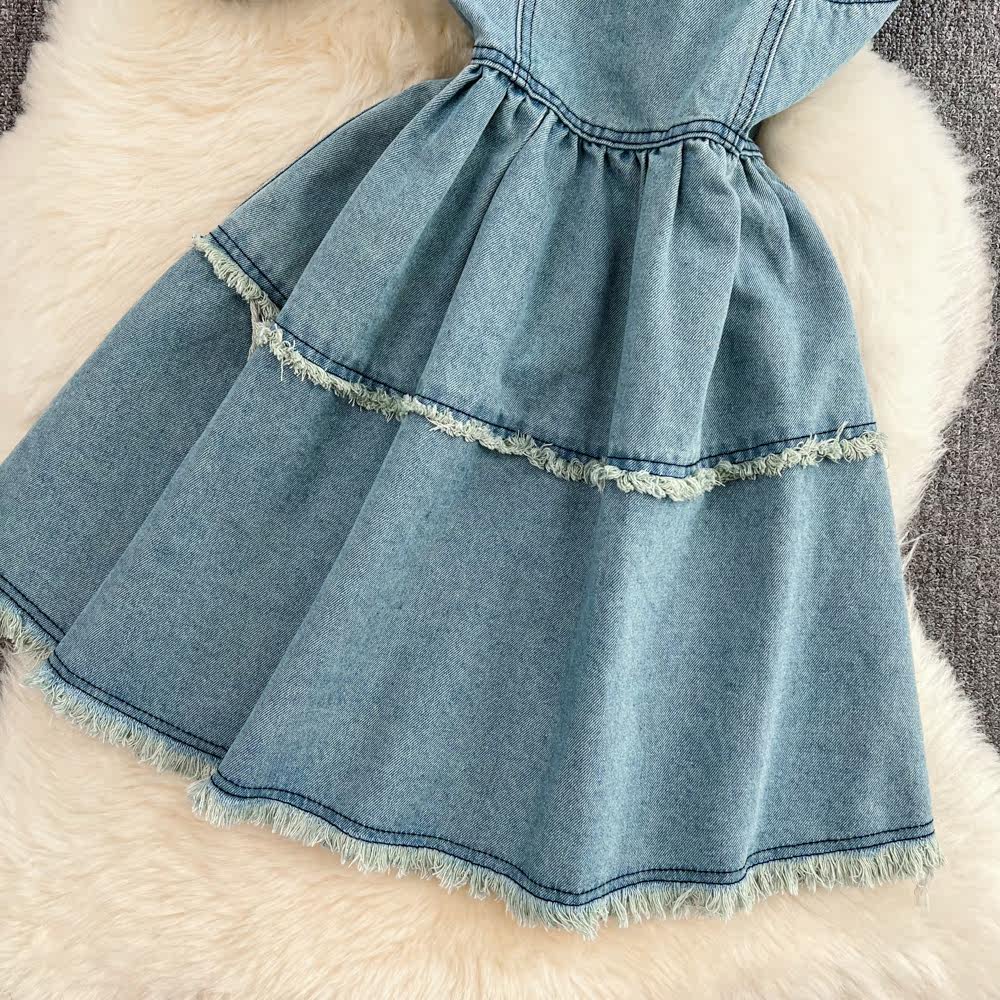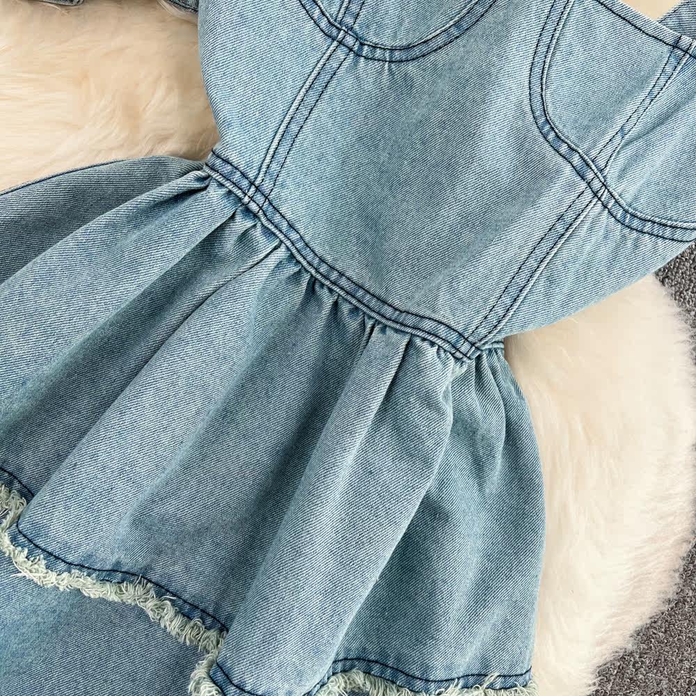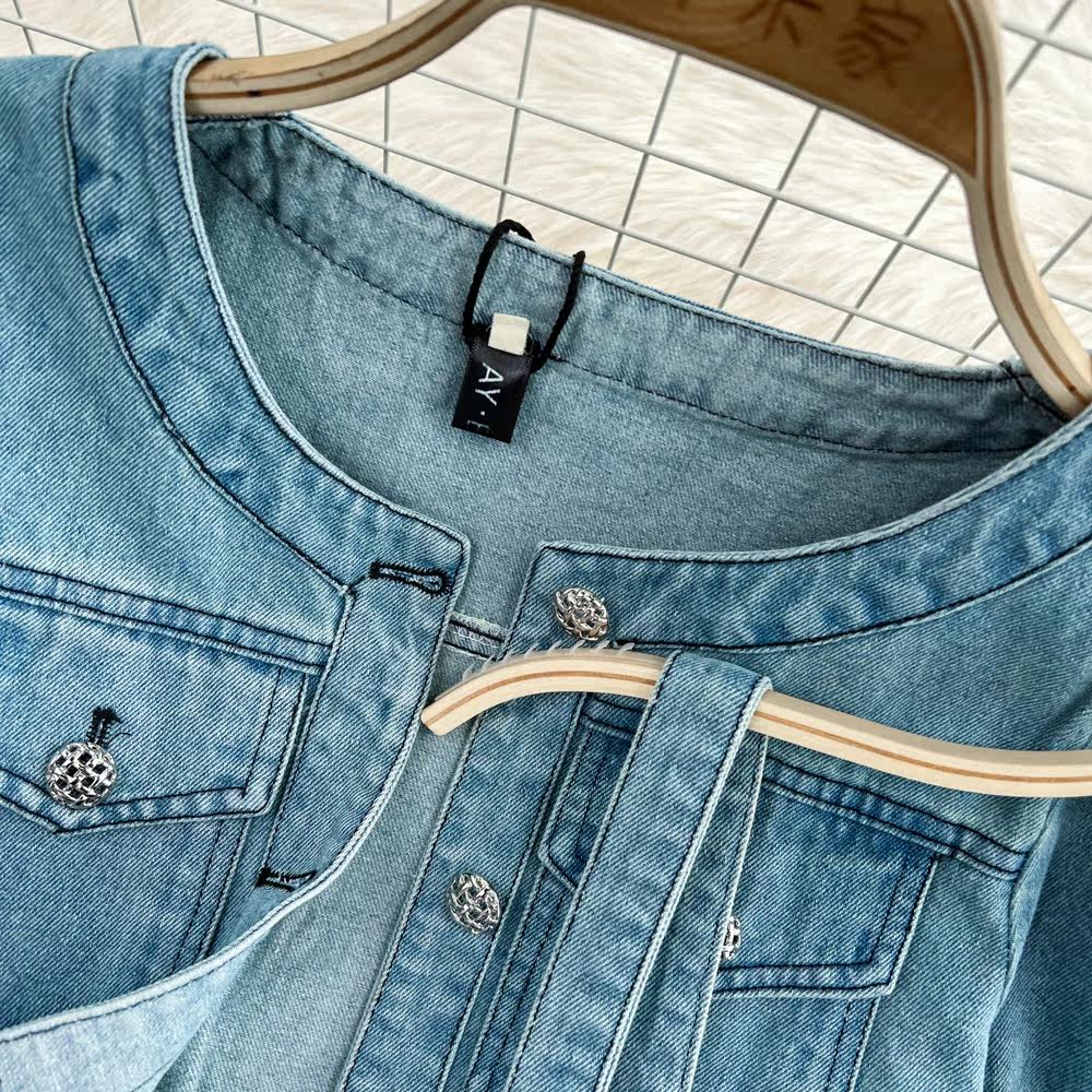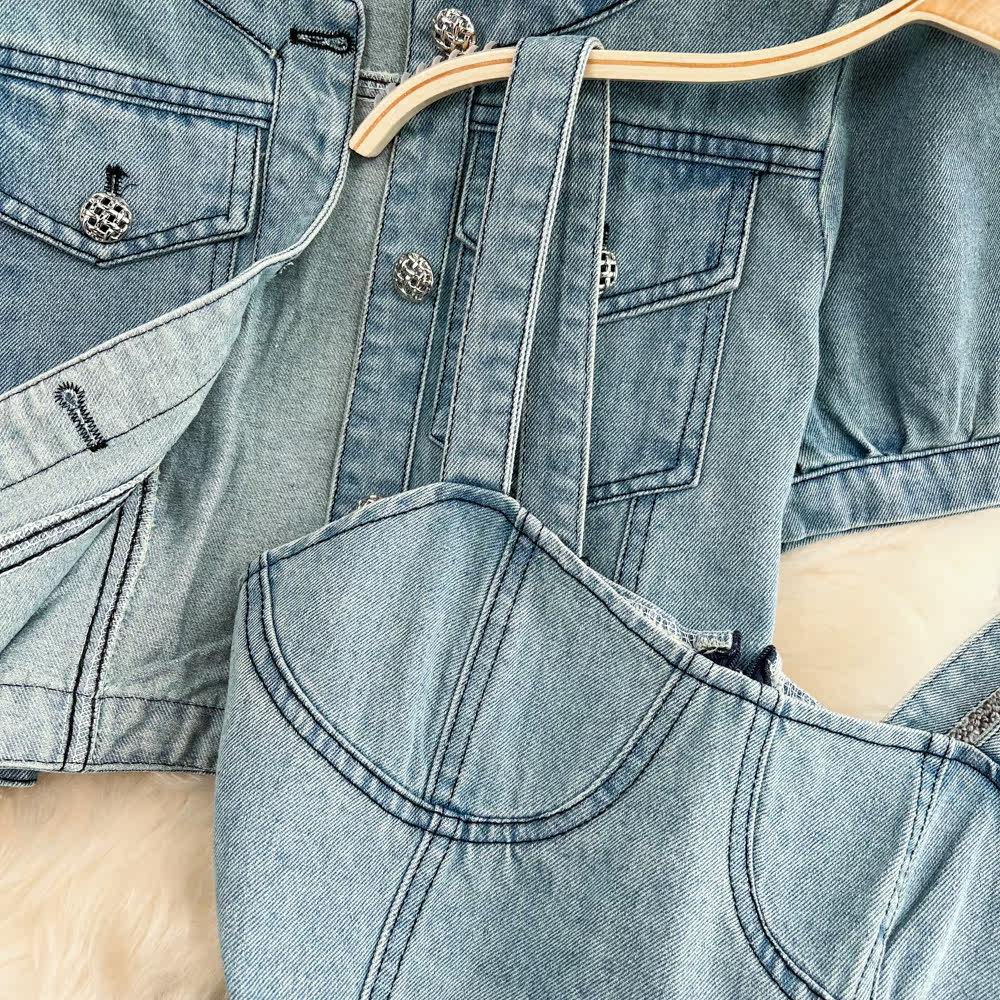 Сексуальный комплект, платье с круглым воротником, джинсовый кардиган, эффект подтяжки