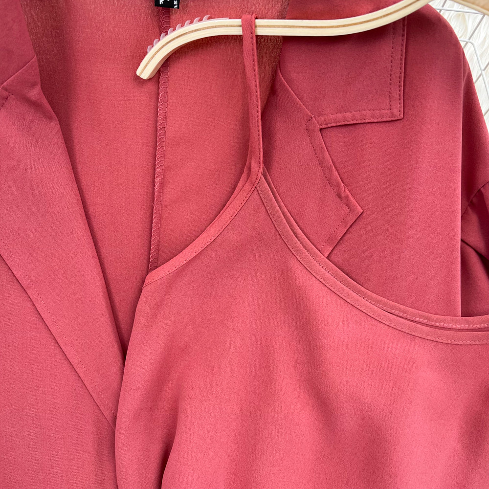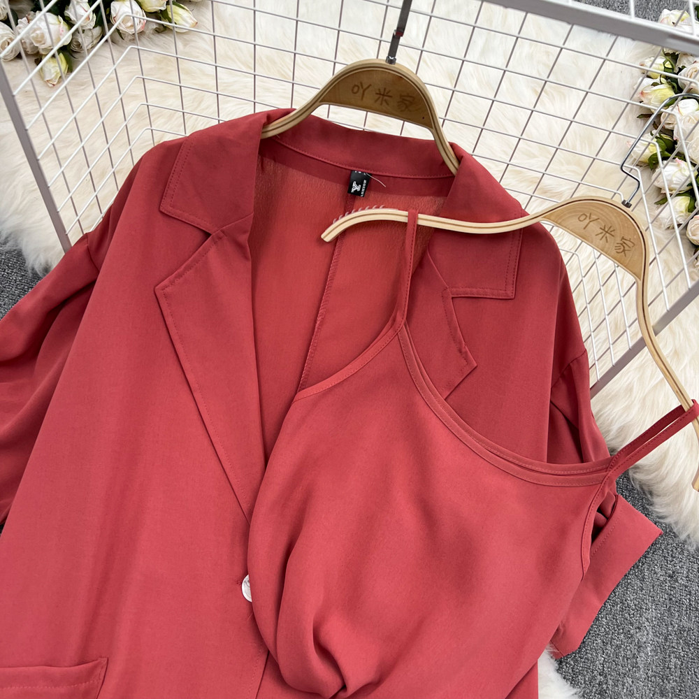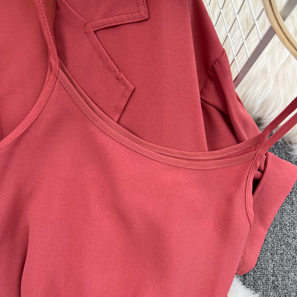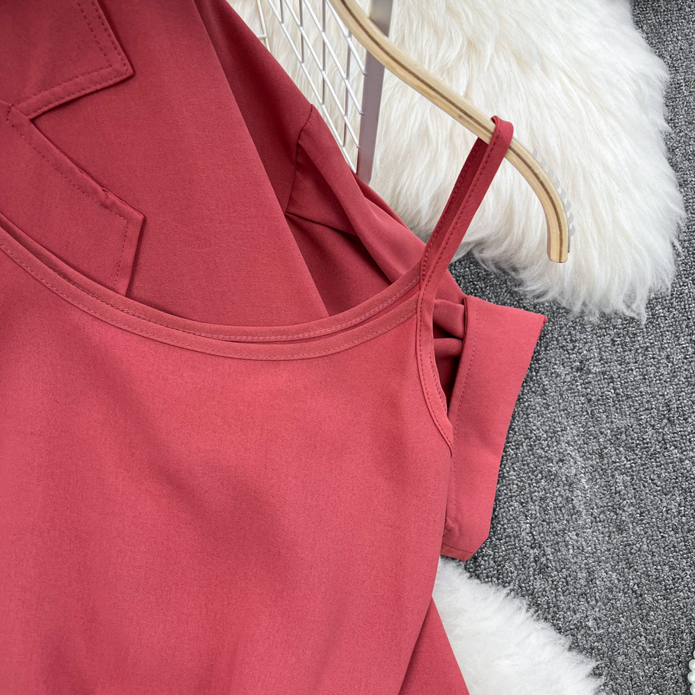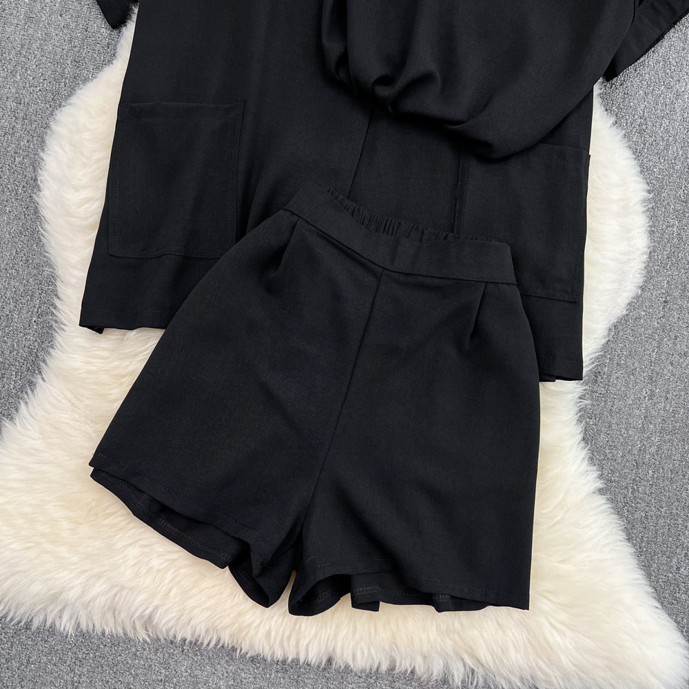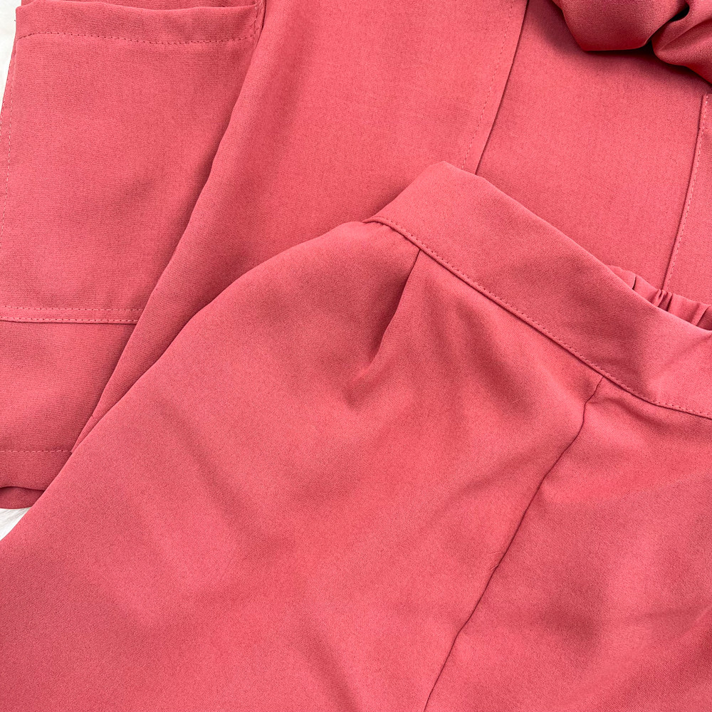 Комплект, длинный пиджак классического кроя, рубашка, топ с чашечками, шорты, штаны, средней длины, 3 предмета, высокая талия