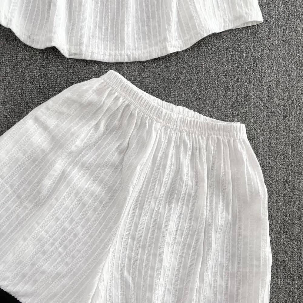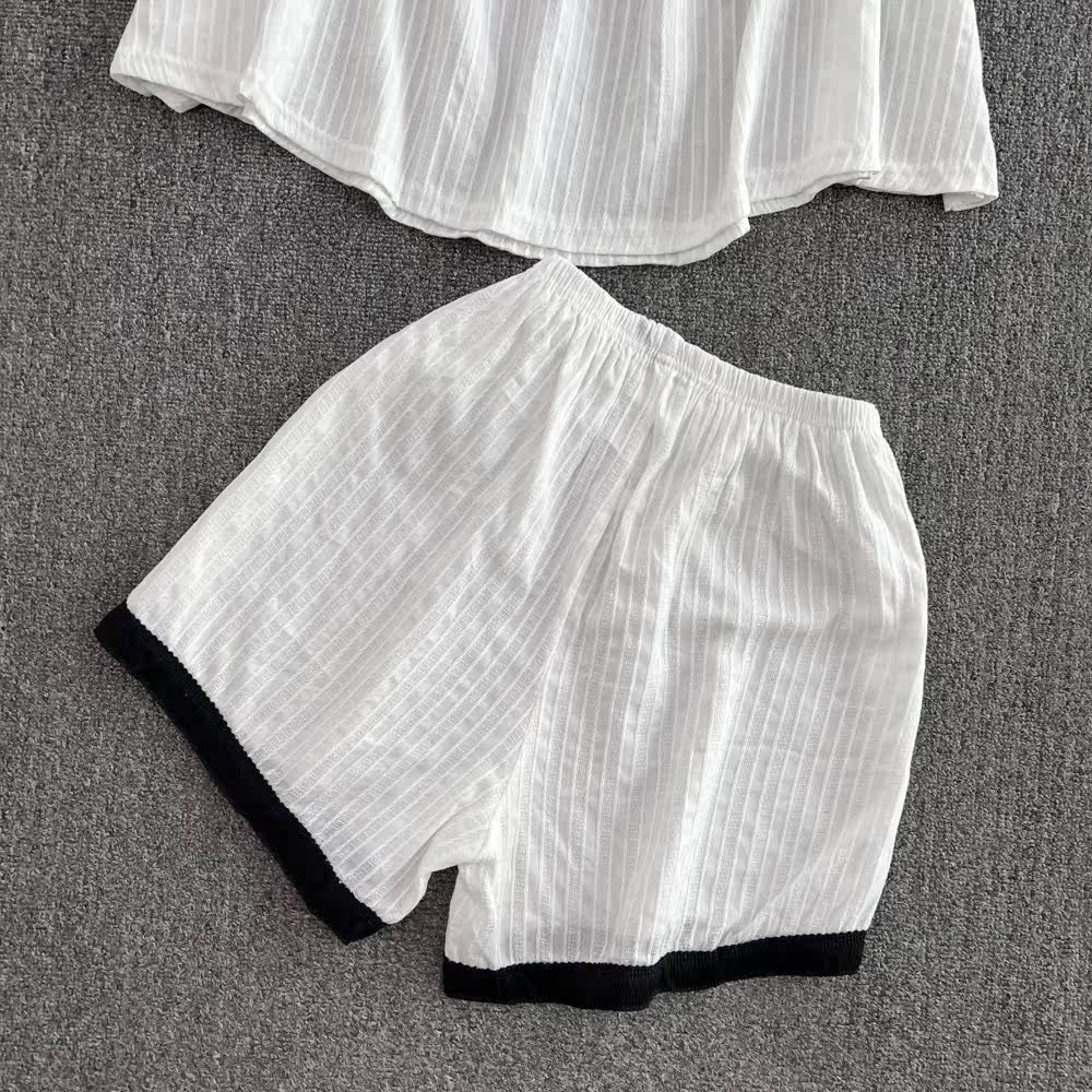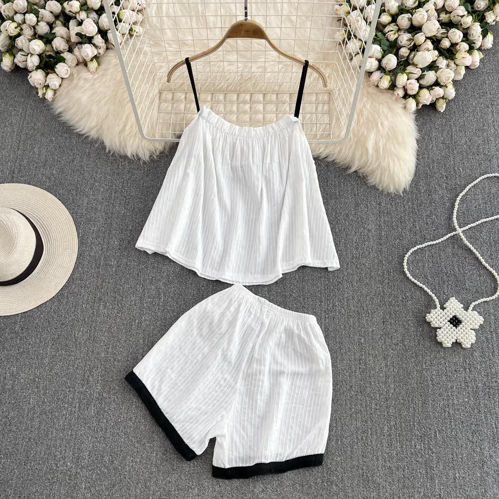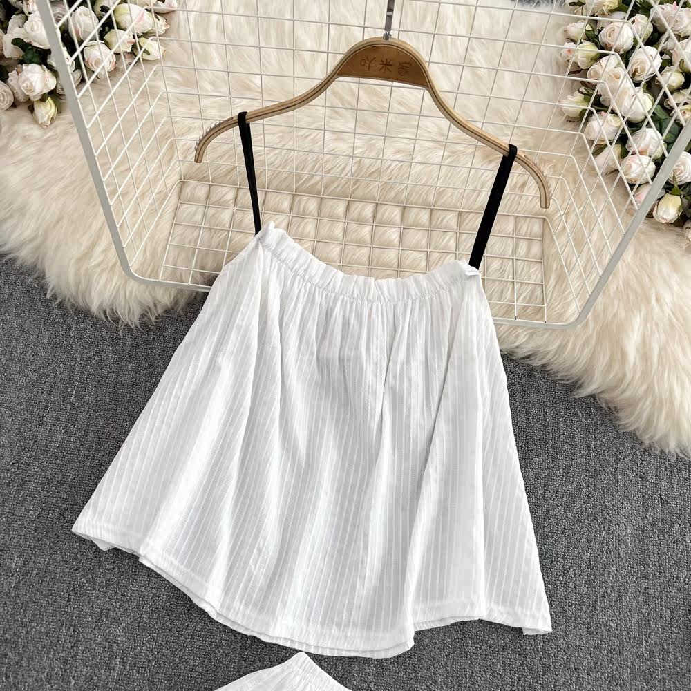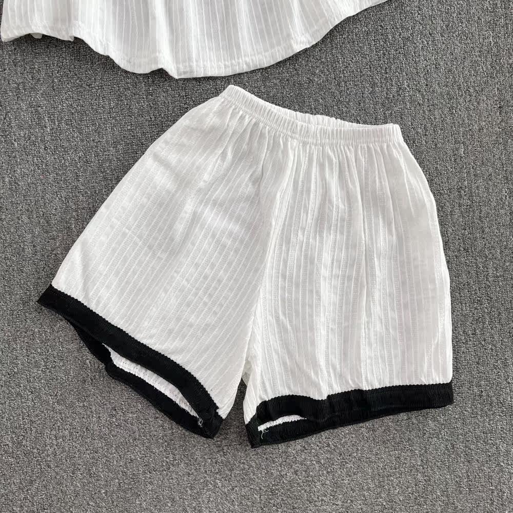 Милый комплект, цветной топ с чашечками, шорты, штаны, свободный крой, высокая талия