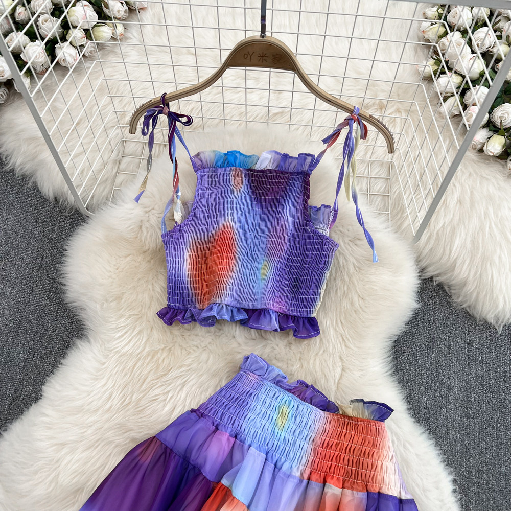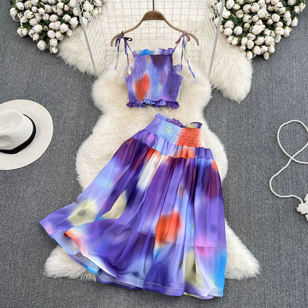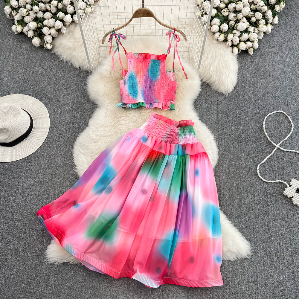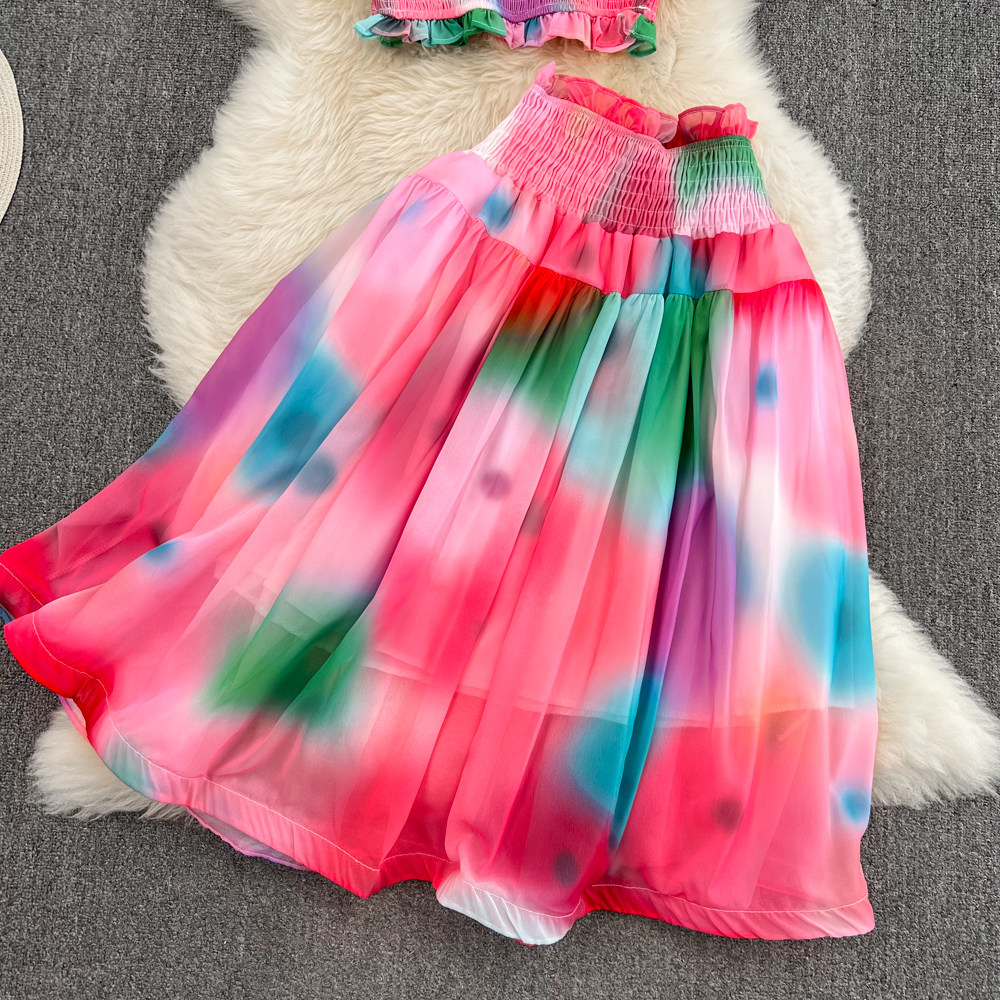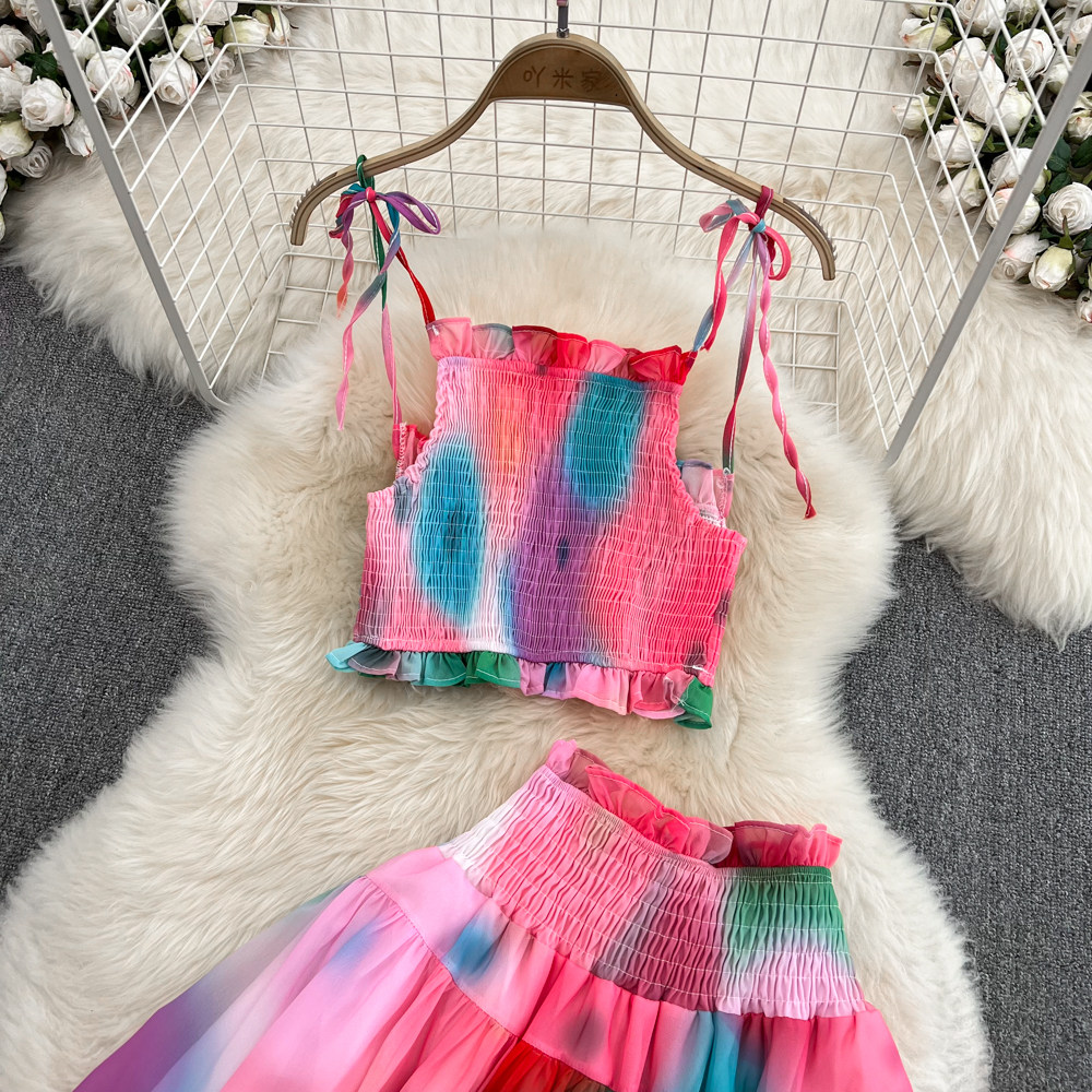 Короткий милый корсет, юбка, комплект, городской стиль, эффект подтяжки, высокая талия