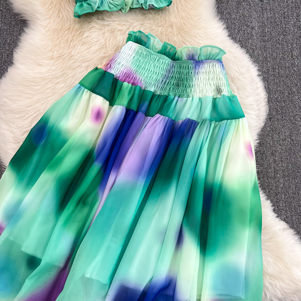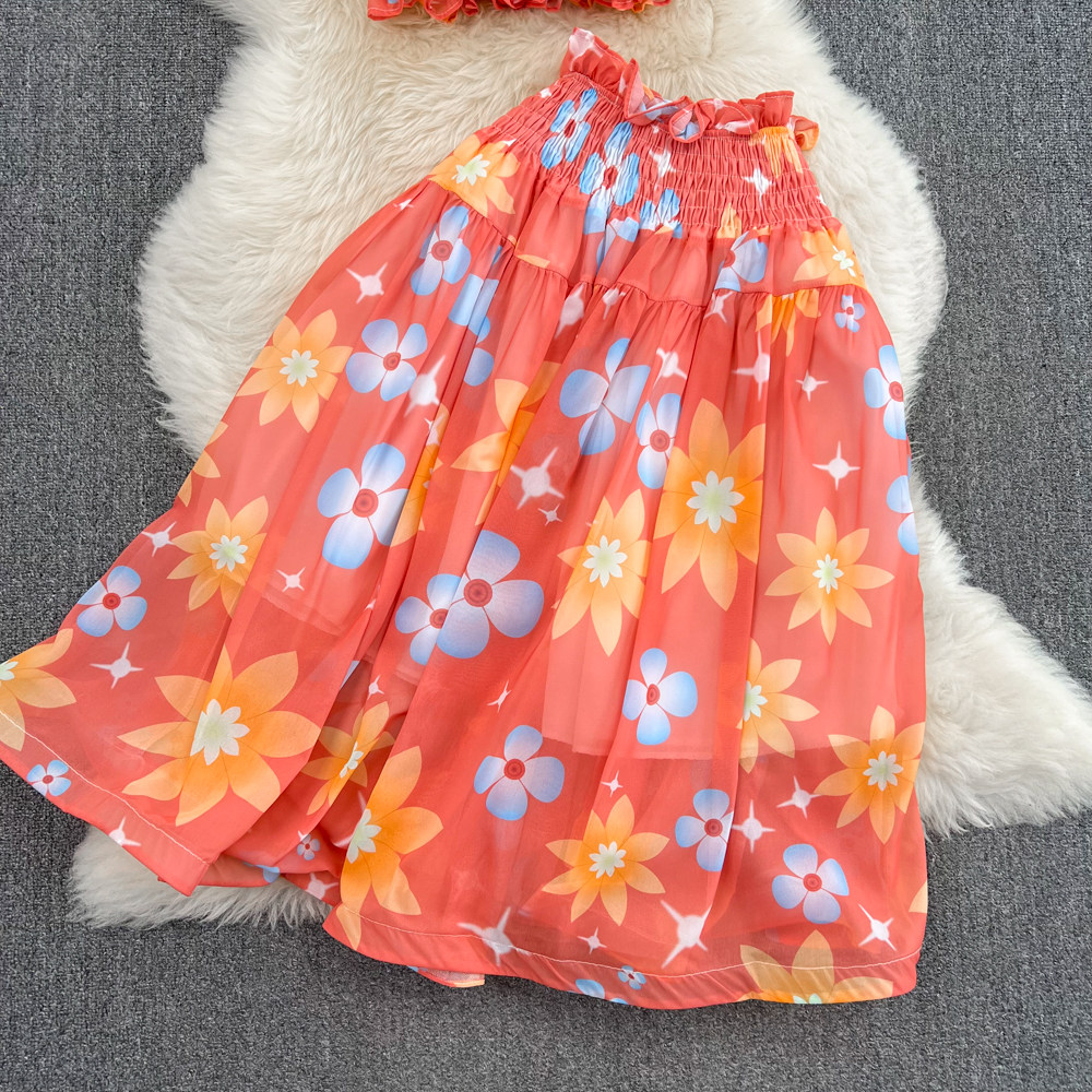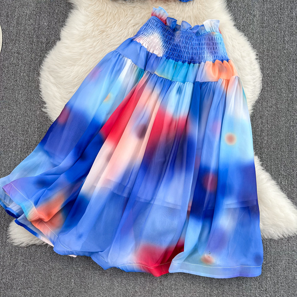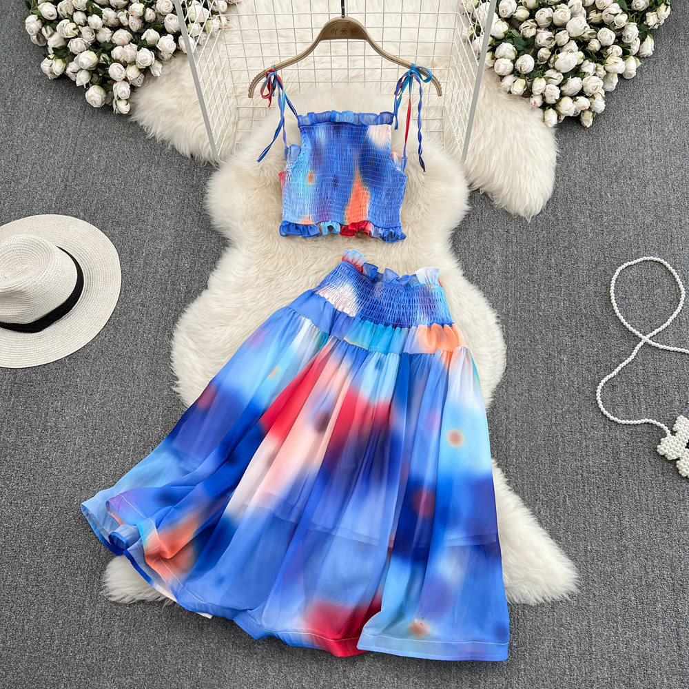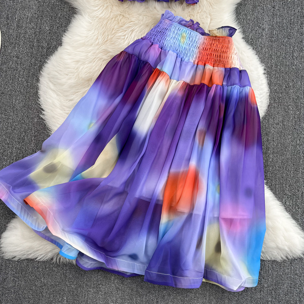 Короткий милый корсет, юбка, комплект, городской стиль, эффект подтяжки, высокая талия