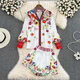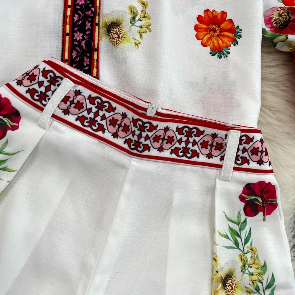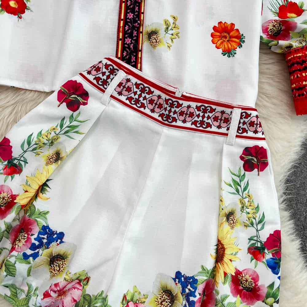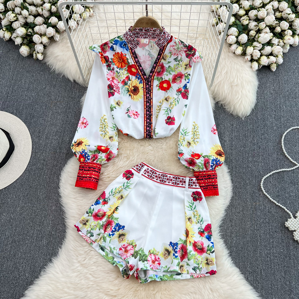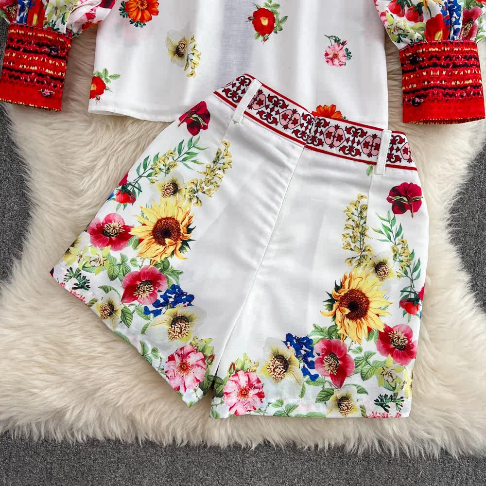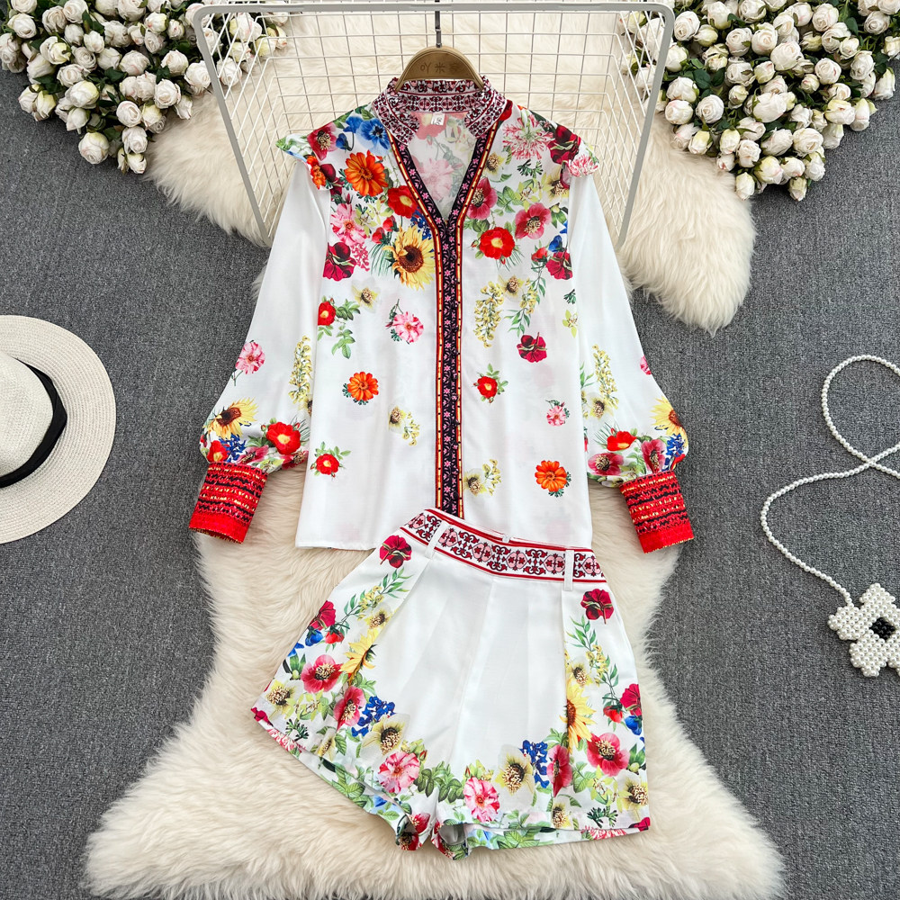Ретро комплект, лонгслив, рубашка, шорты, штаны, свободный крой, высокая талия