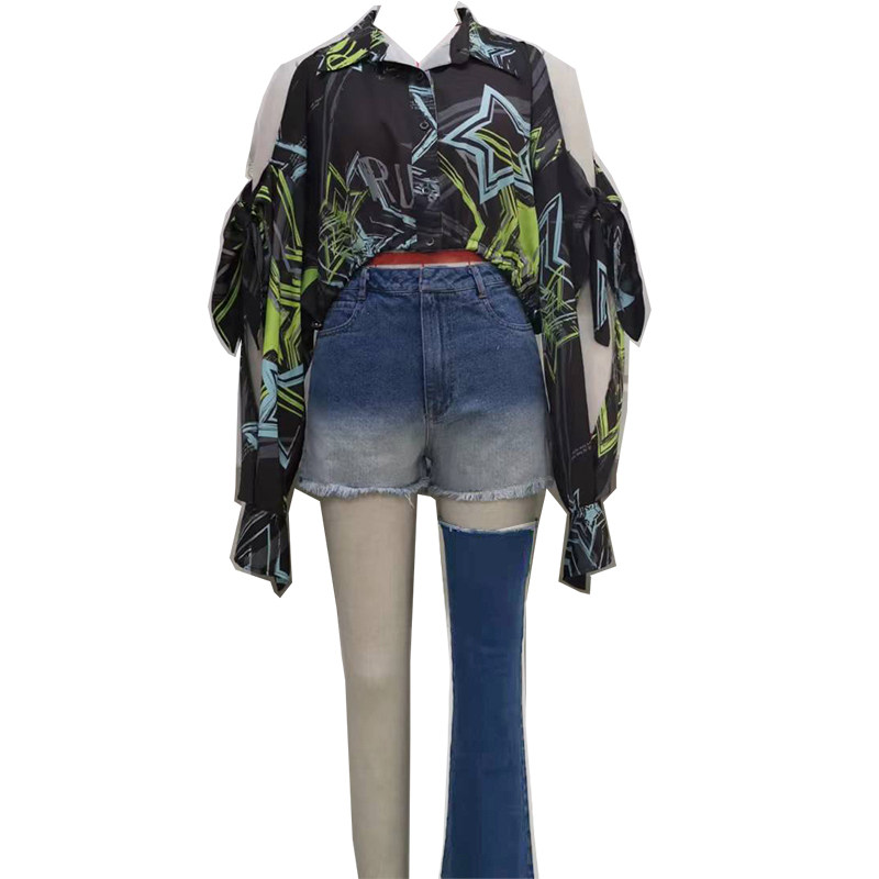 Летний модный гидролат, рубашка, джинсовая юбка, комплект