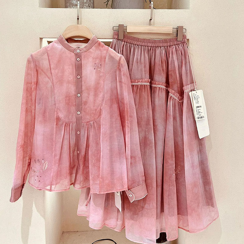 Ретро милая юбка ручной работы, комплект, французский ретро стиль, с вышивкой, по фигуре