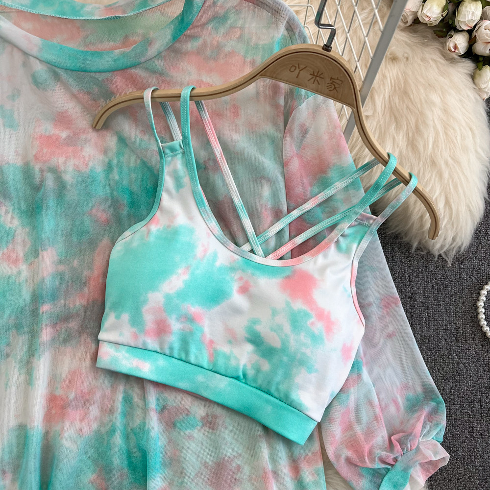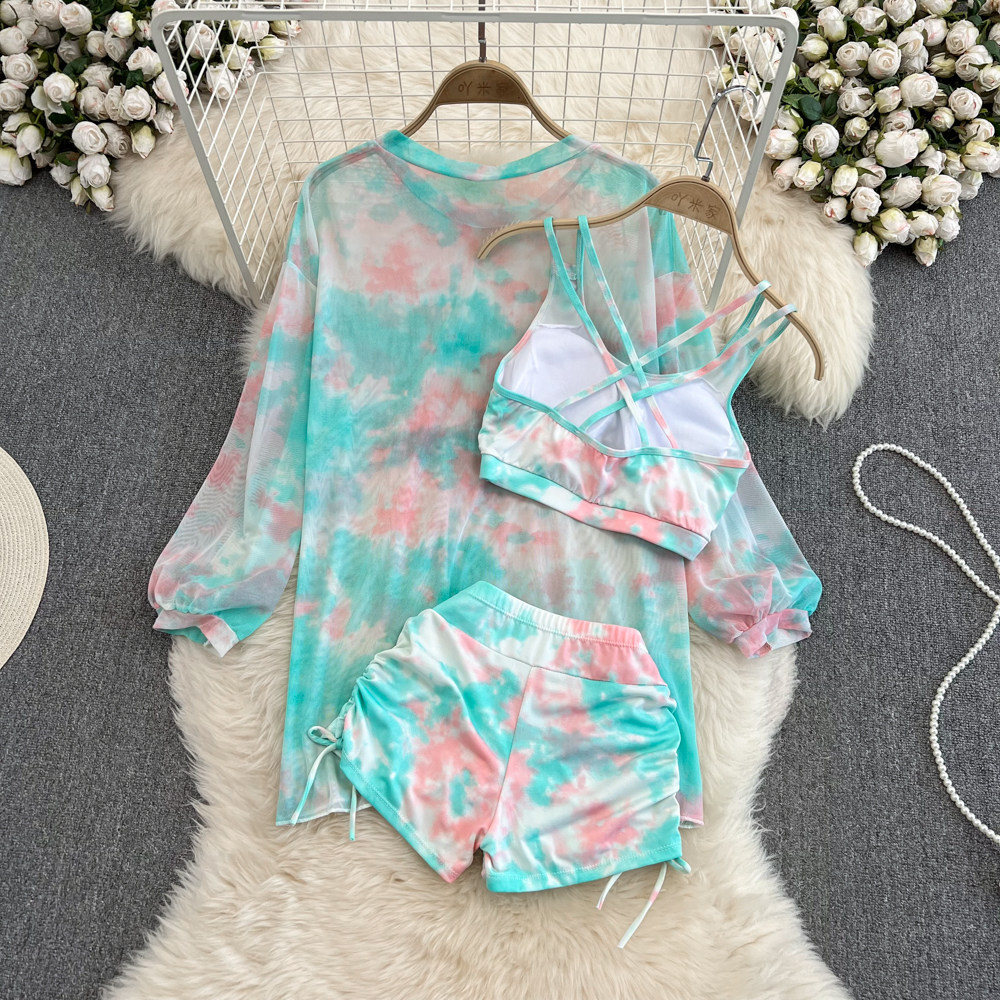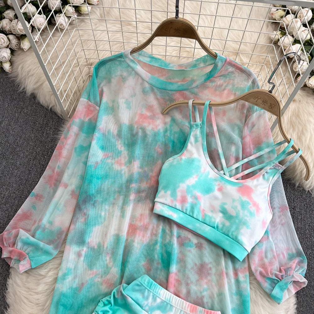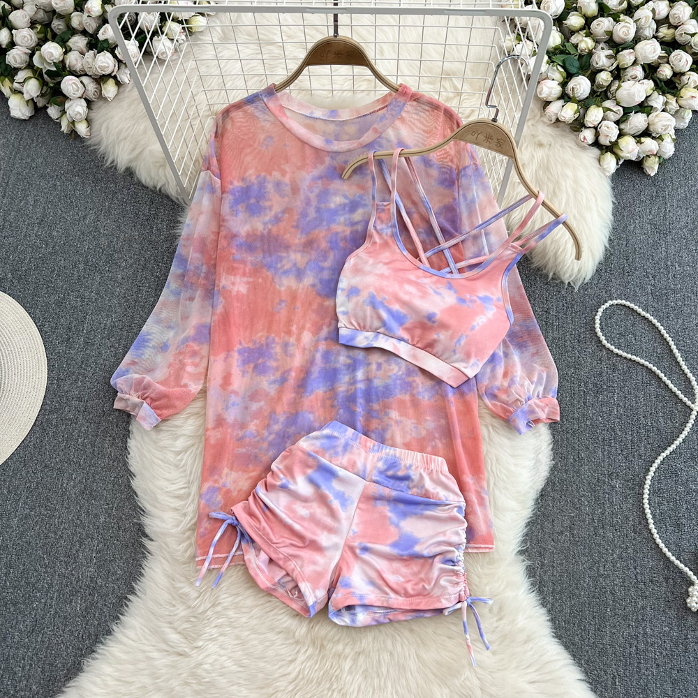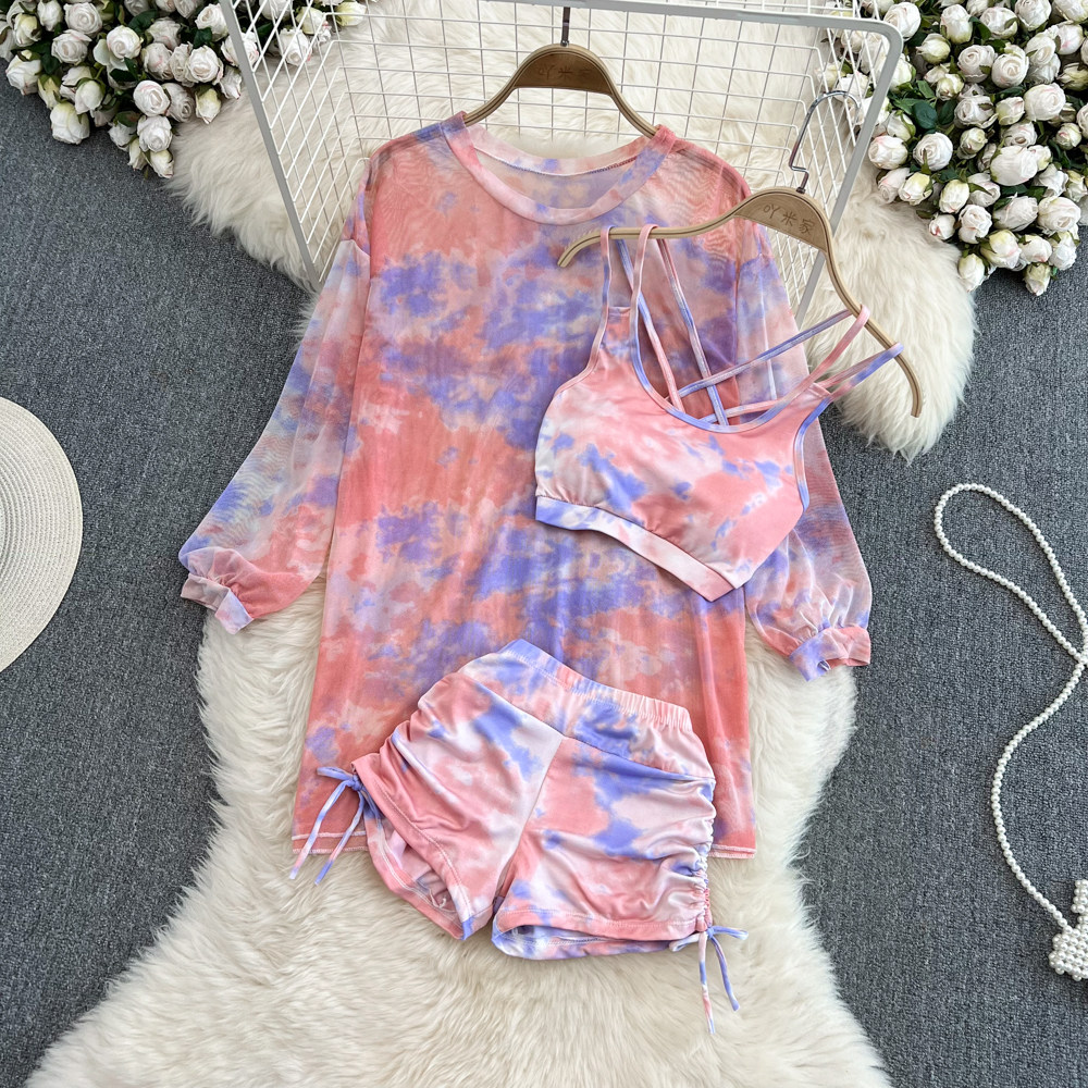 Три -набор топов+шорты+солнцезащитные кремы ~