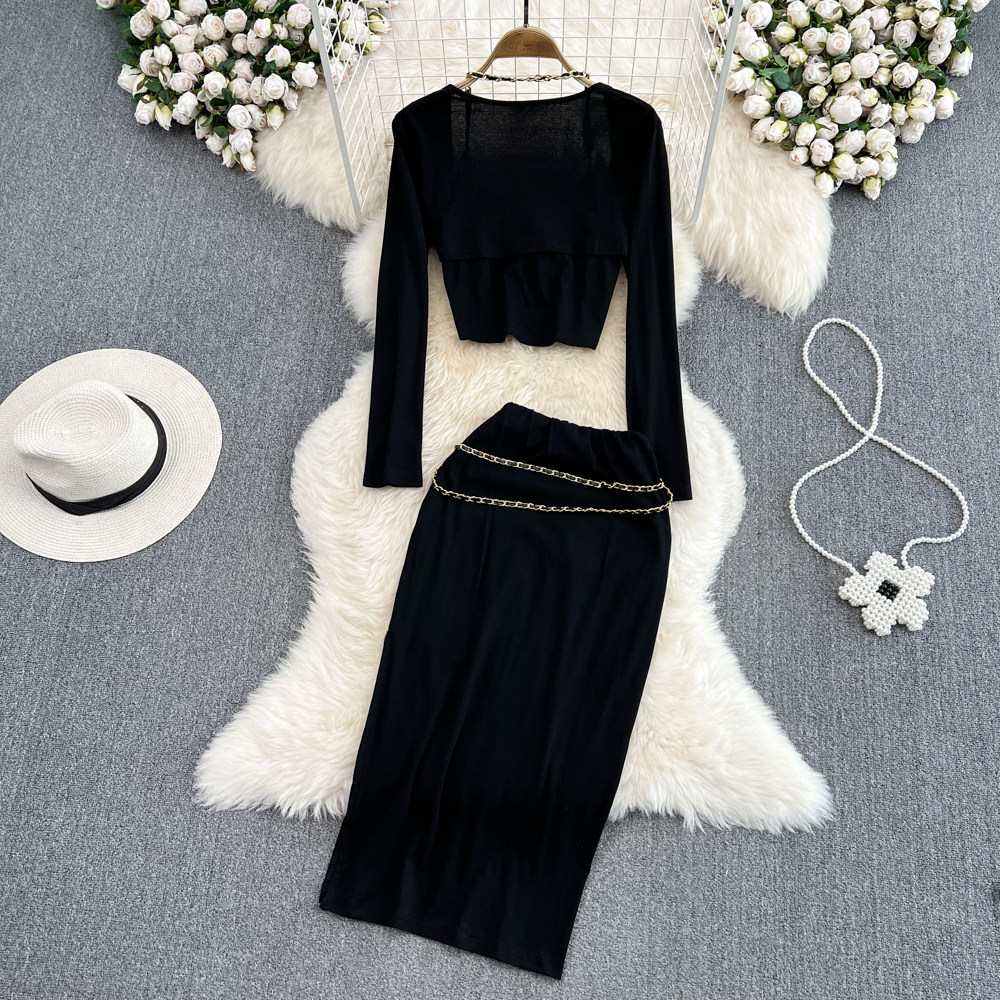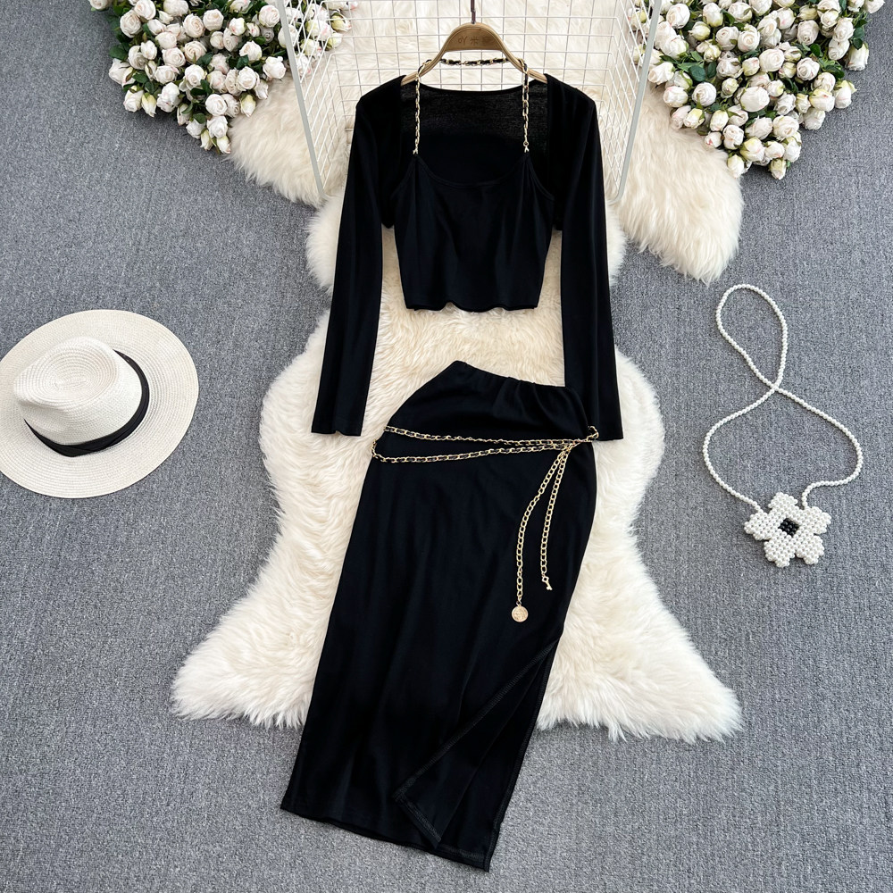 Комплект, цепь, топ с чашечками, накидка, куртка, поясная сумка, юбка, 3 предмета, высокая талия