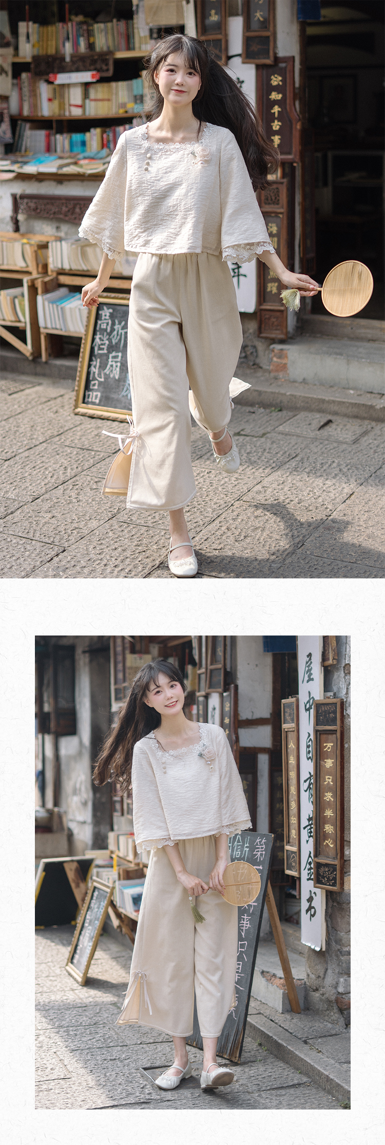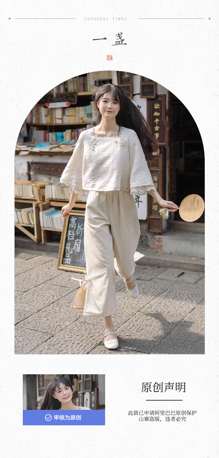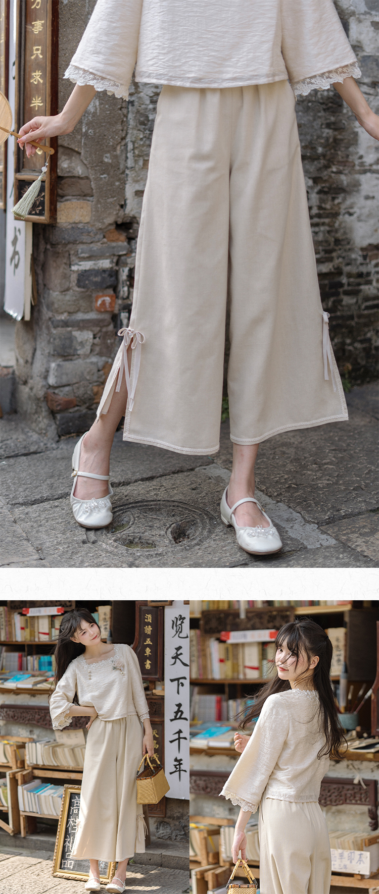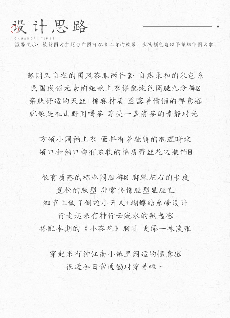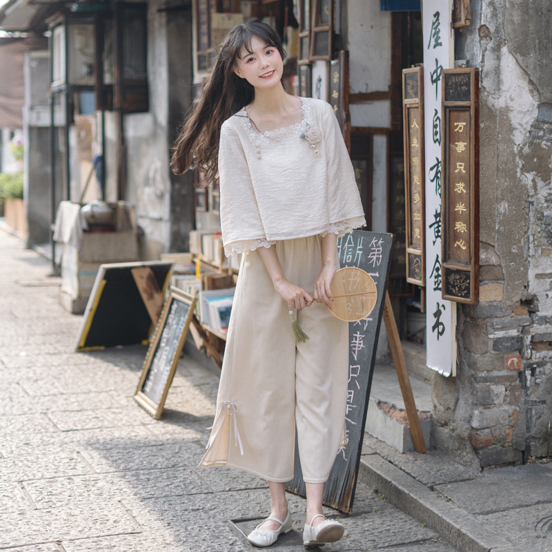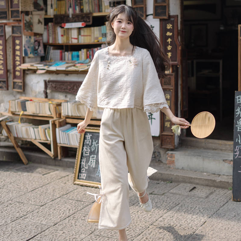 川黛时光 Короткие штаны, комплект, китайский стиль, осенние