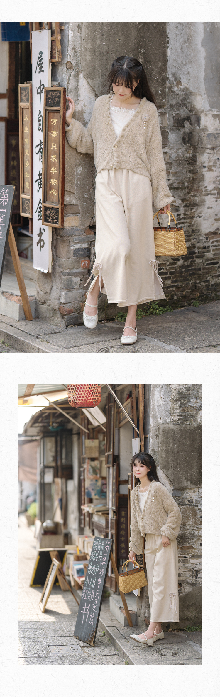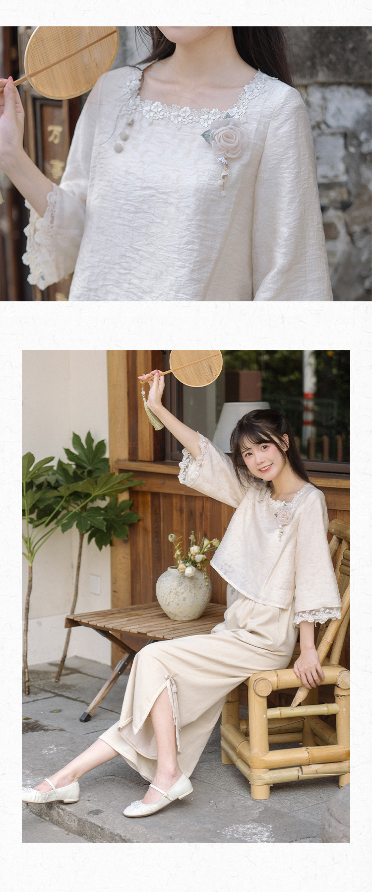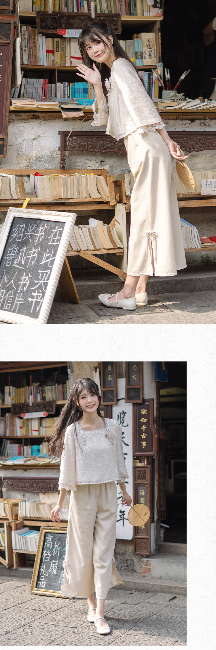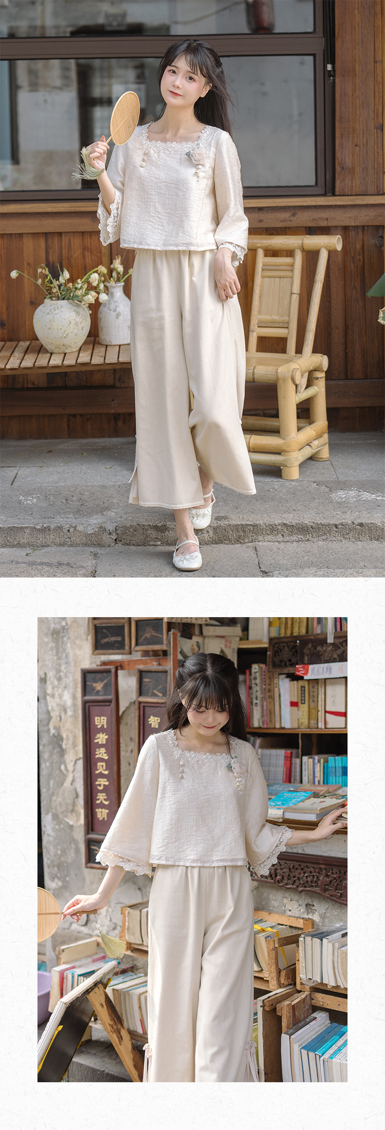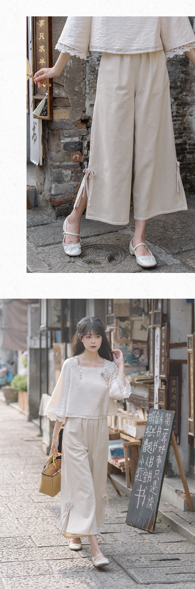 川黛时光 Короткие штаны, комплект, китайский стиль, осенние