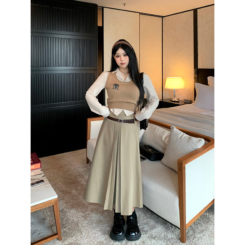 Весенний трикотажный жилет, юбка, рубашка, комплект, 2023, 3 предмета, Таиланд