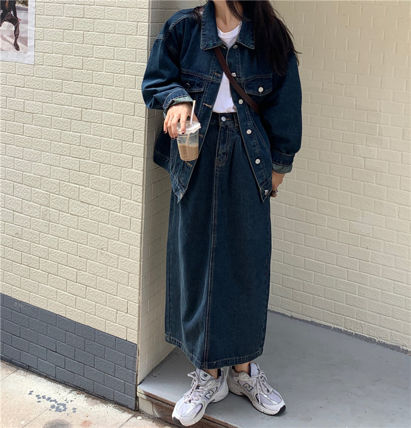 Джинсовый комплект для отдыха, осенний кардиган, юбка, большой размер