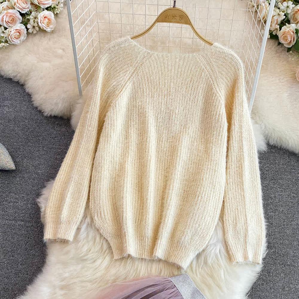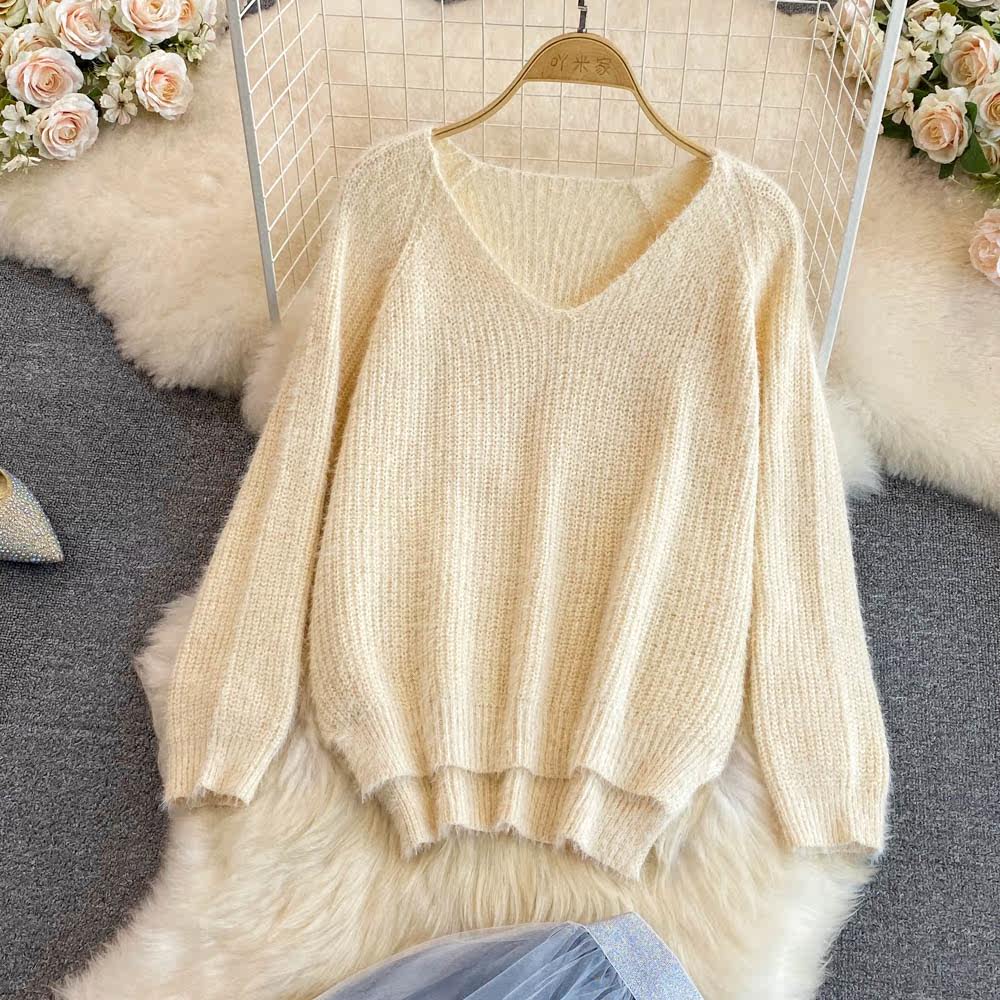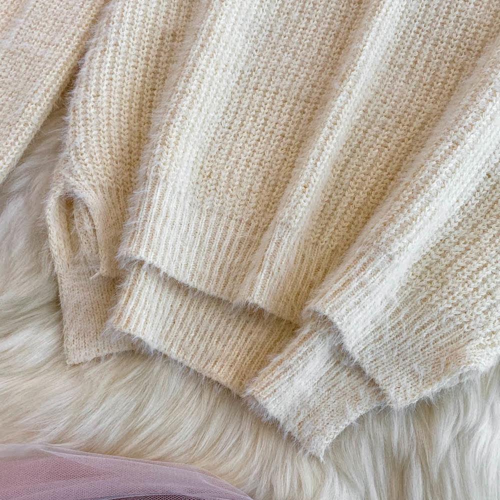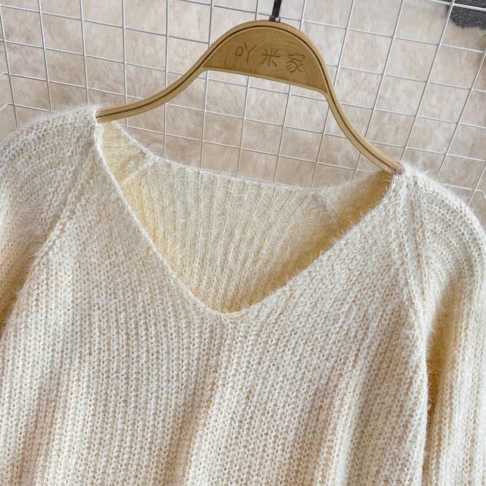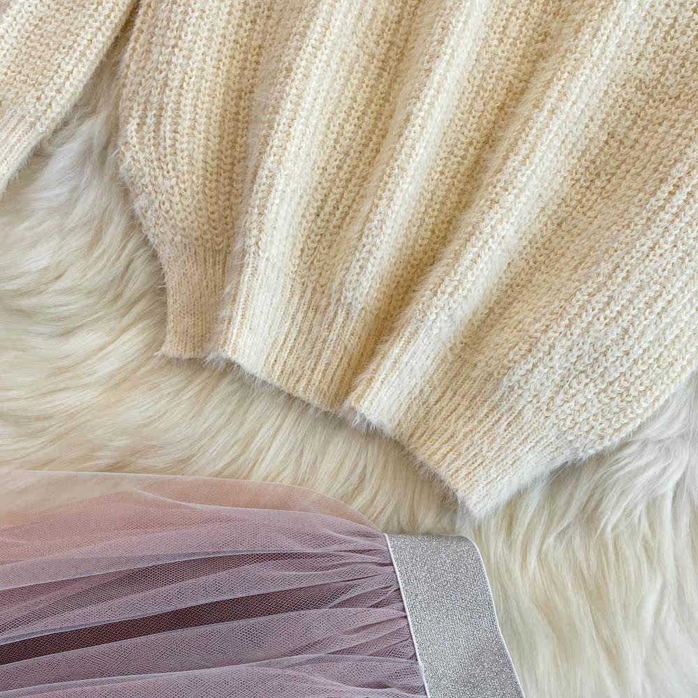 Комплект, трикотажный длинный свитер, юбка, V-образный вырез, длина миди, высокая талия, А-силуэт