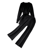 Ретро комплект, приталенный корсет, трикотажные штаны, европейский стиль, V-образный вырез, высокая талия