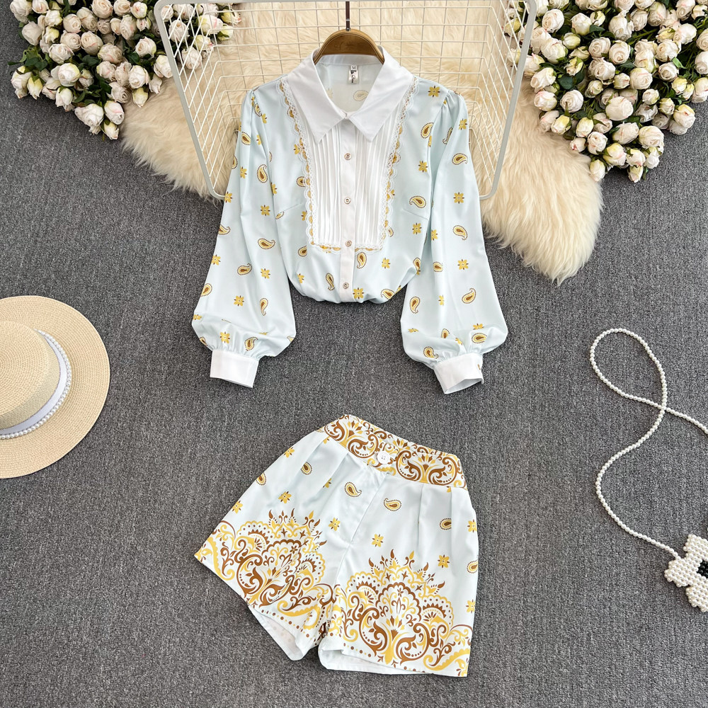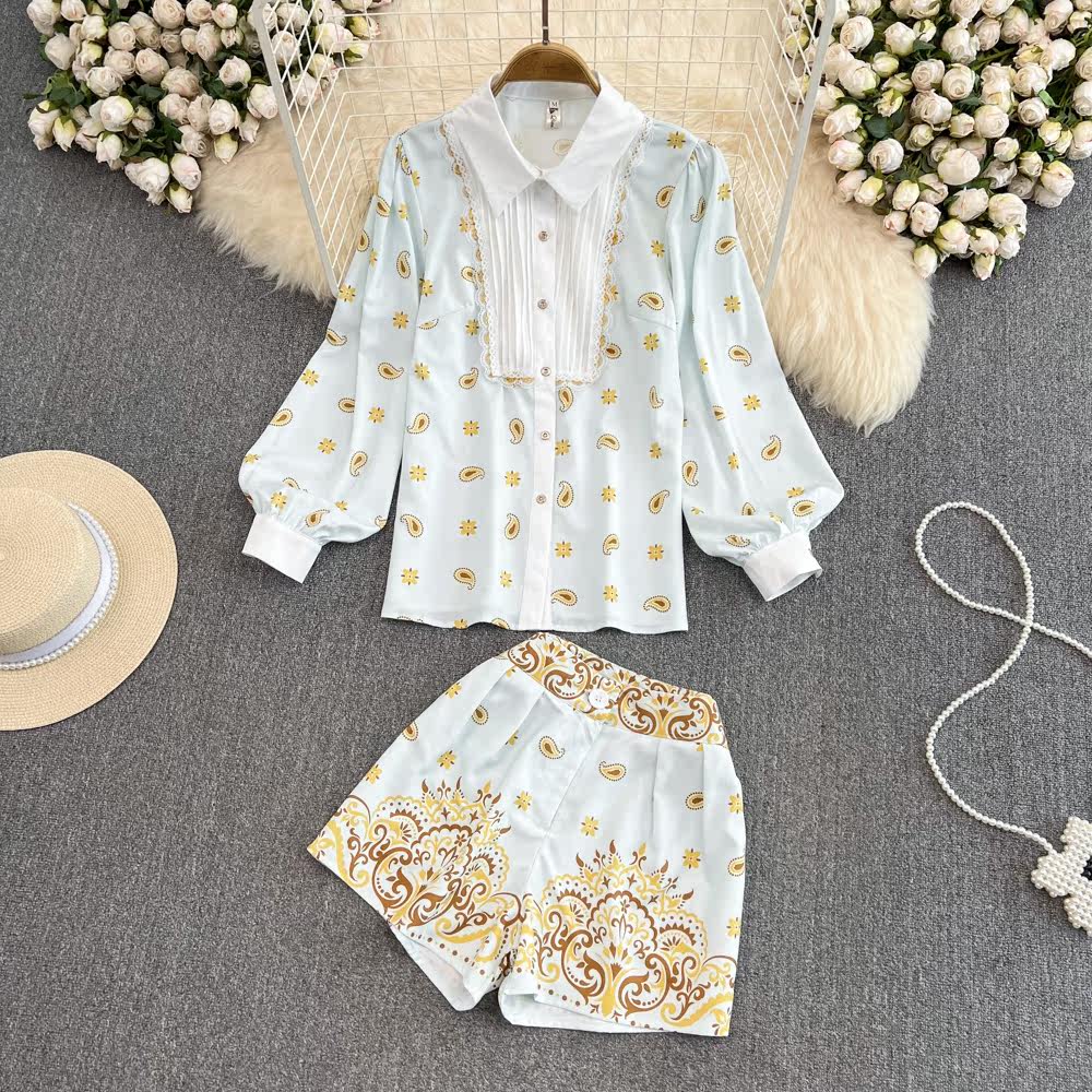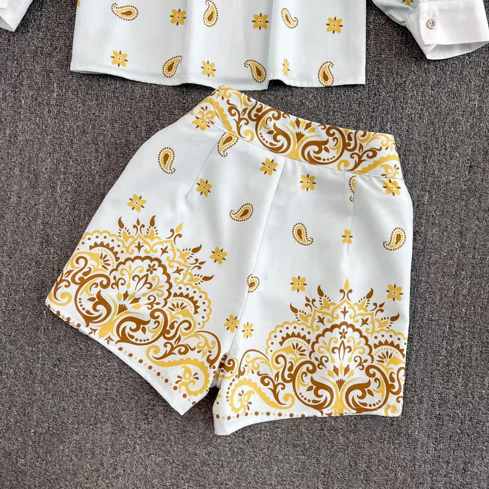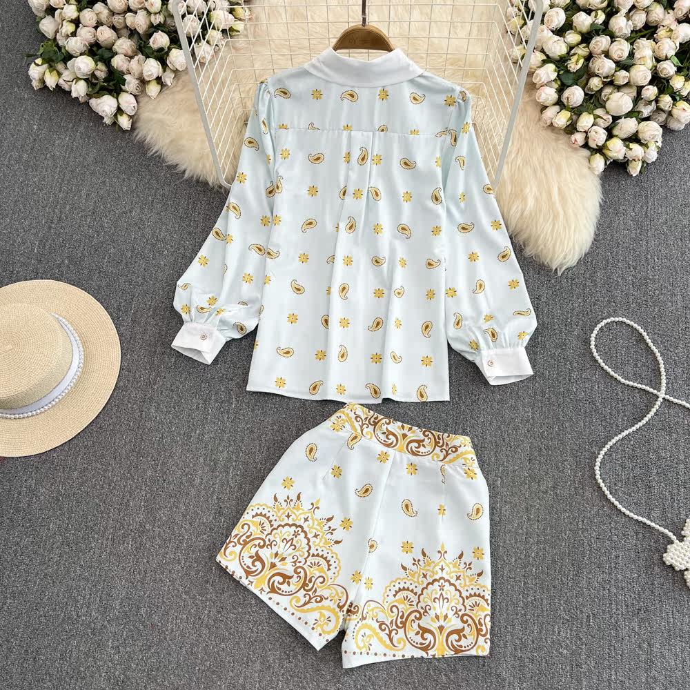 Комплект, лонгслив, рубашка, шорты, легкий роскошный стиль, свободный крой, высокая талия