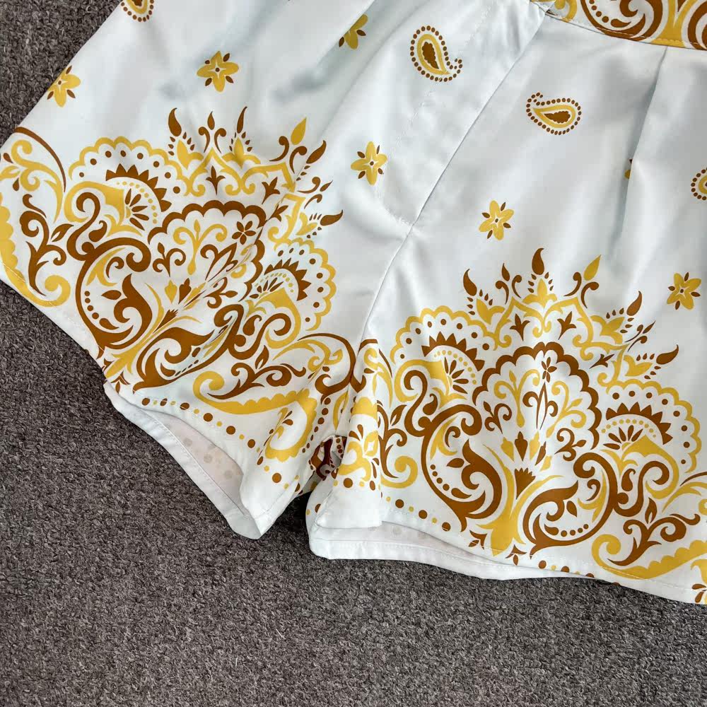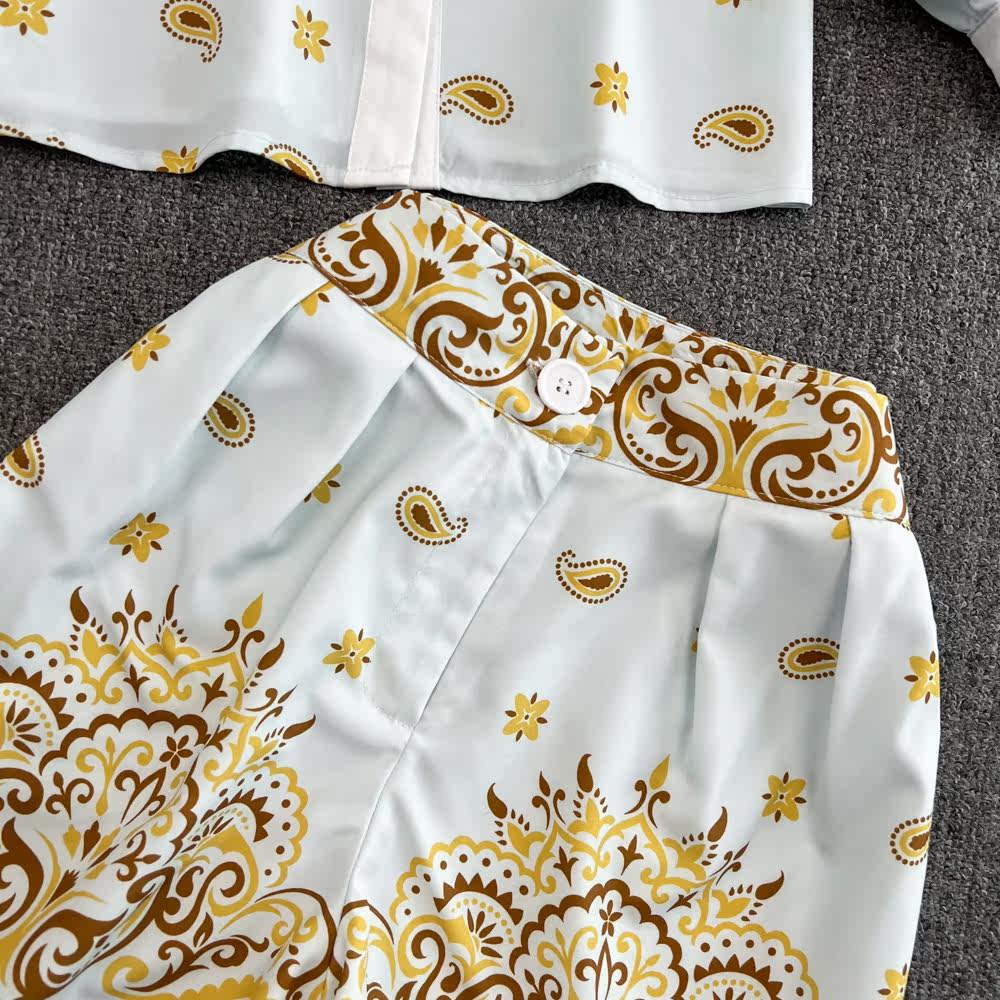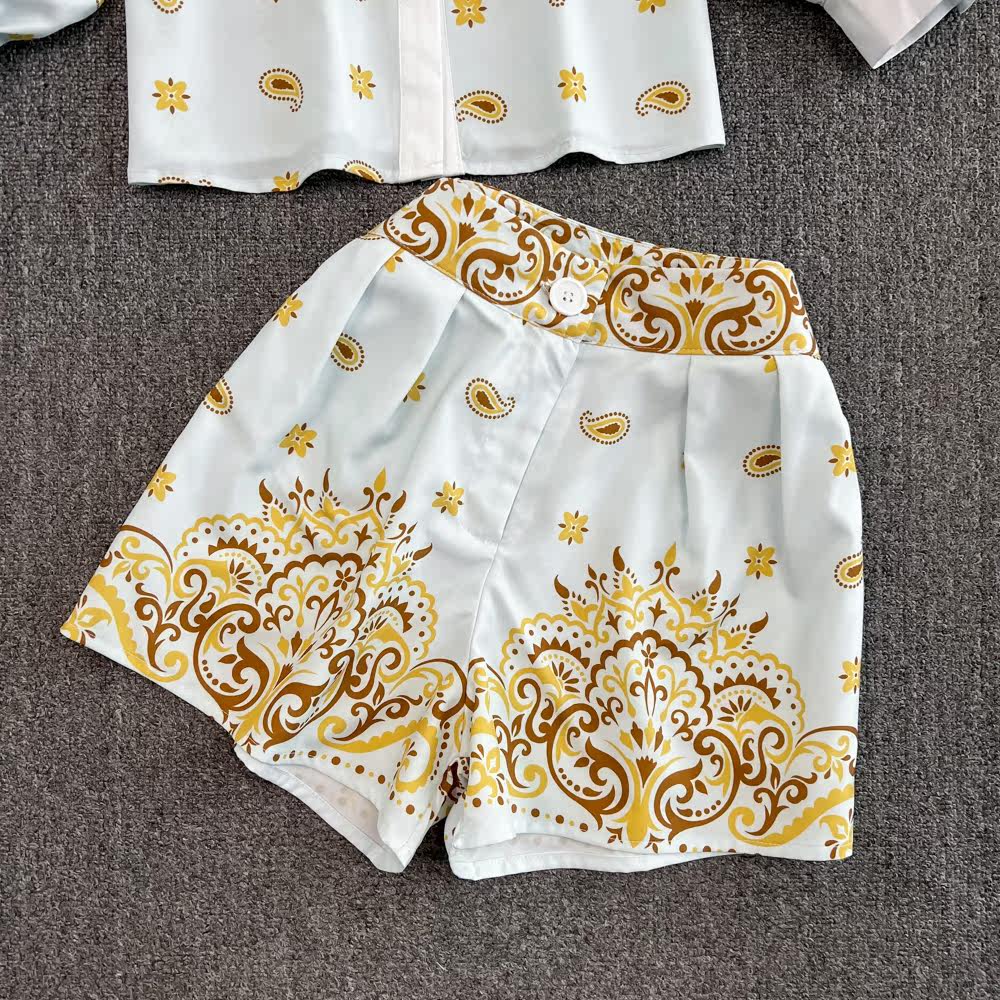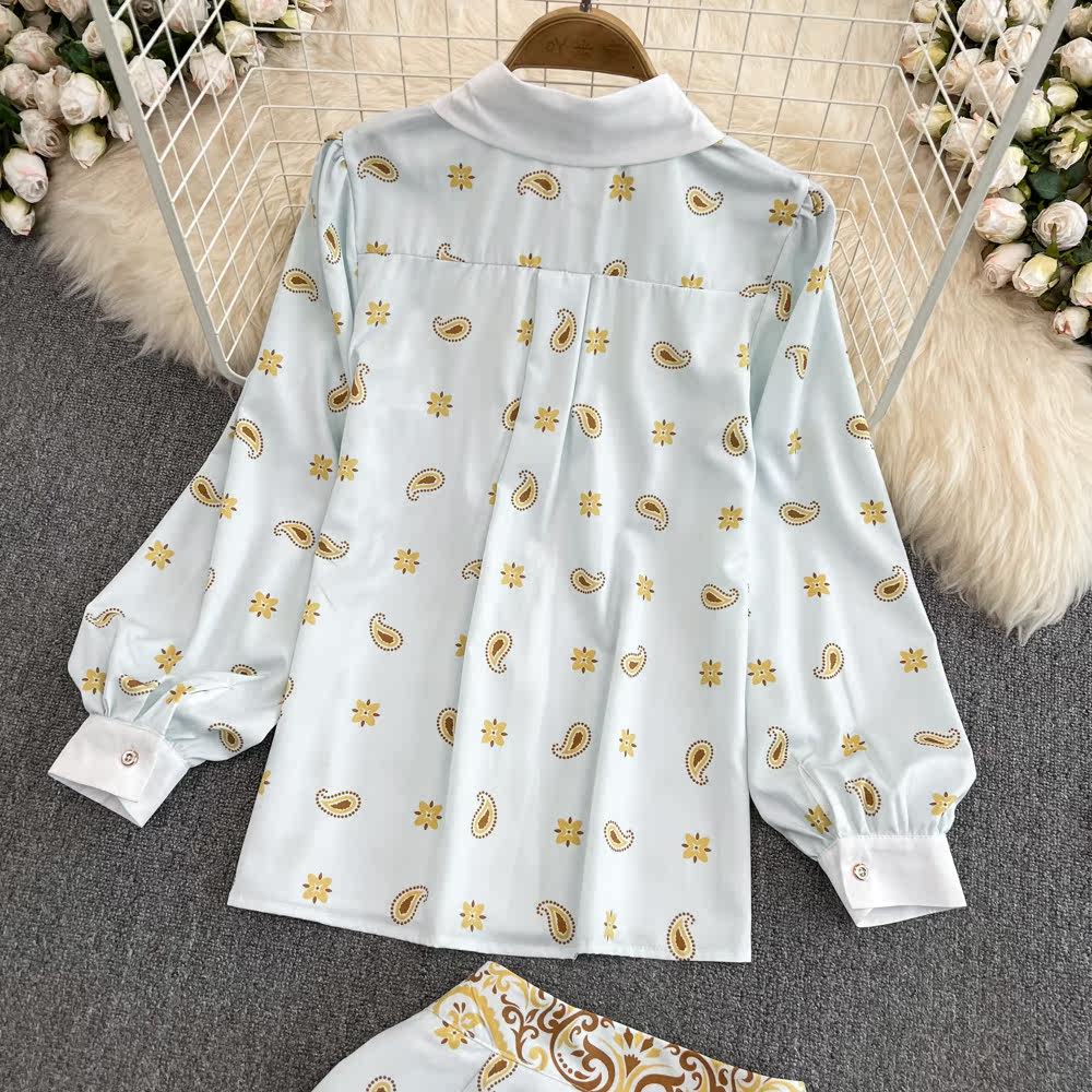 Комплект, лонгслив, рубашка, шорты, легкий роскошный стиль, свободный крой, высокая талия