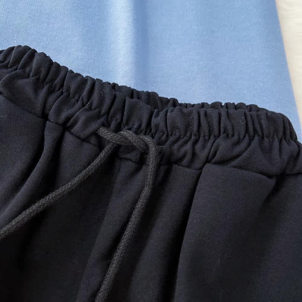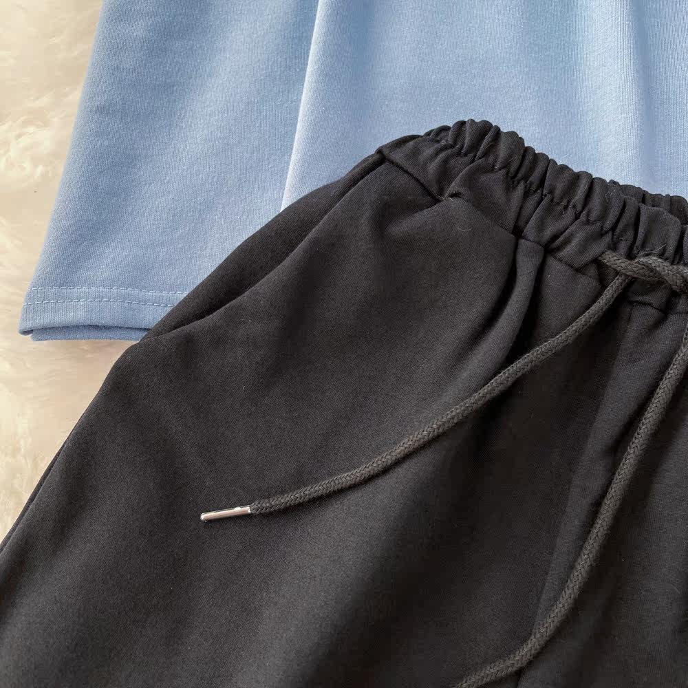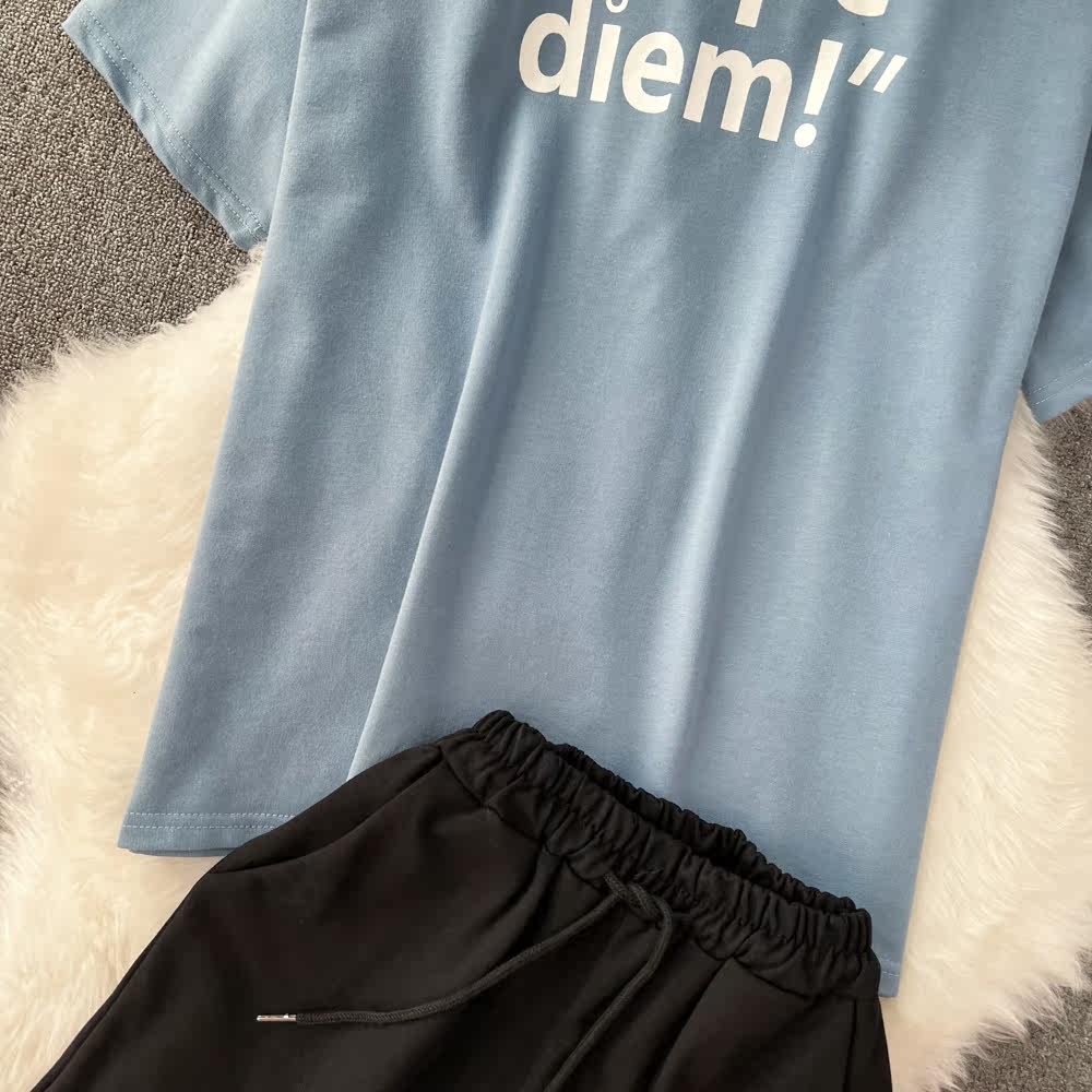 Комплект с круглым воротником с буквами, ретро футболка, шорты, короткий рукав, свободный крой