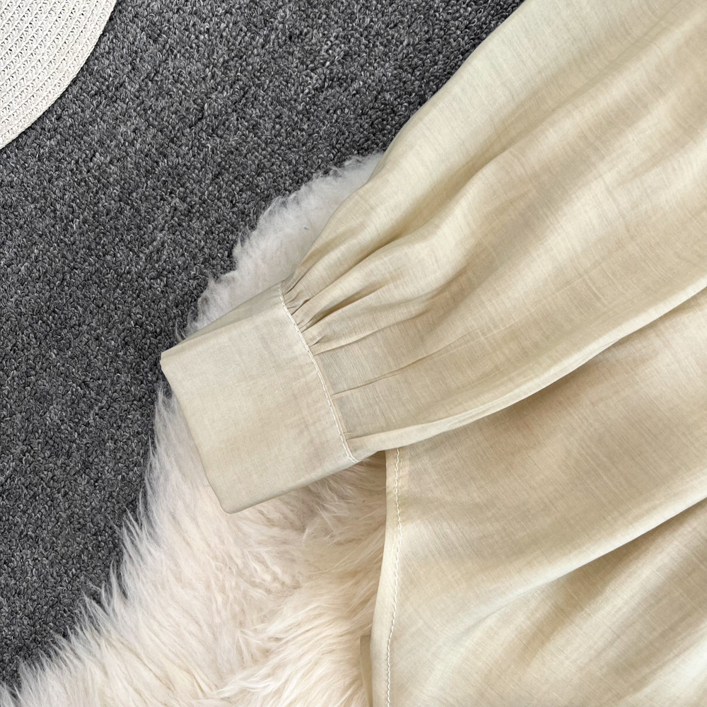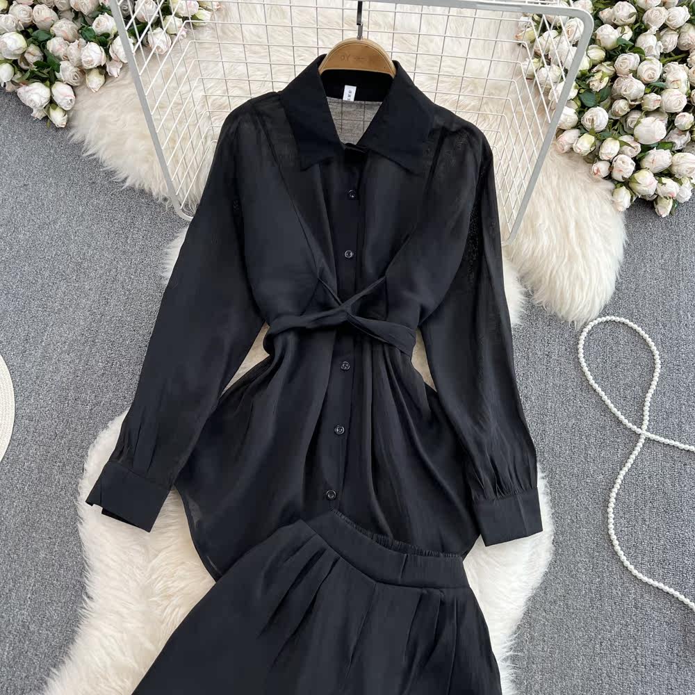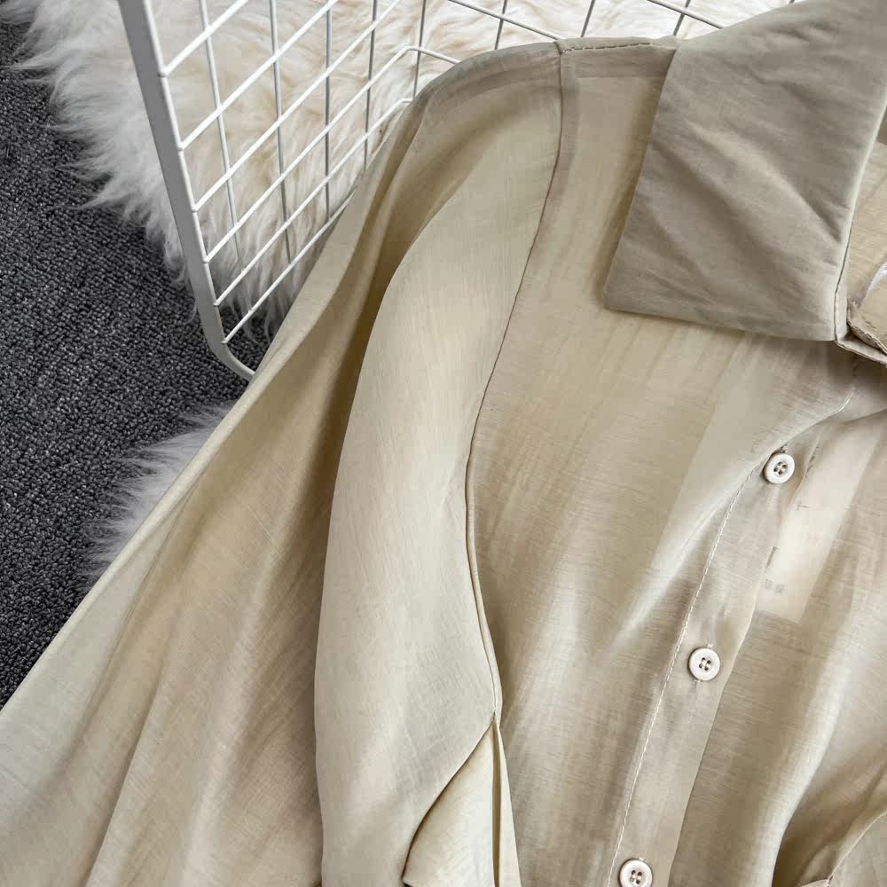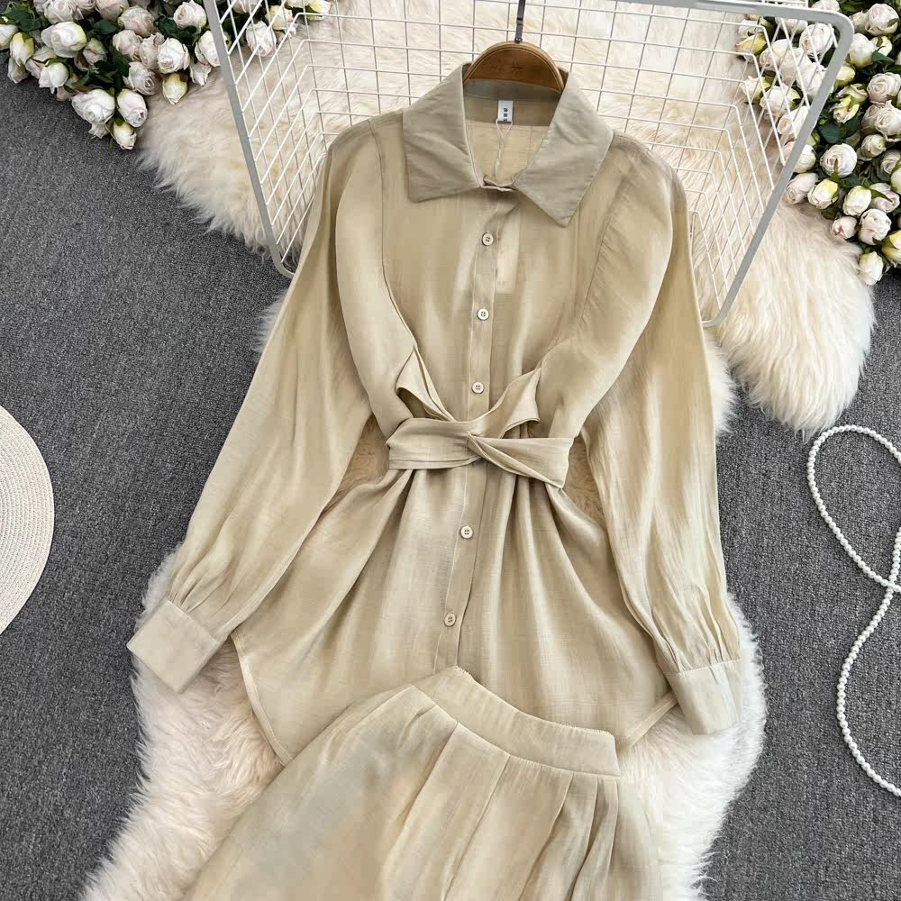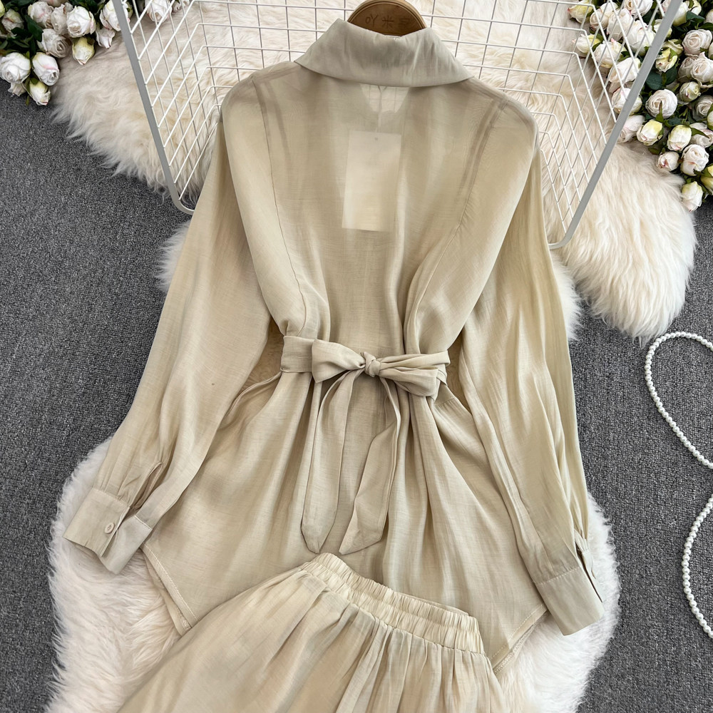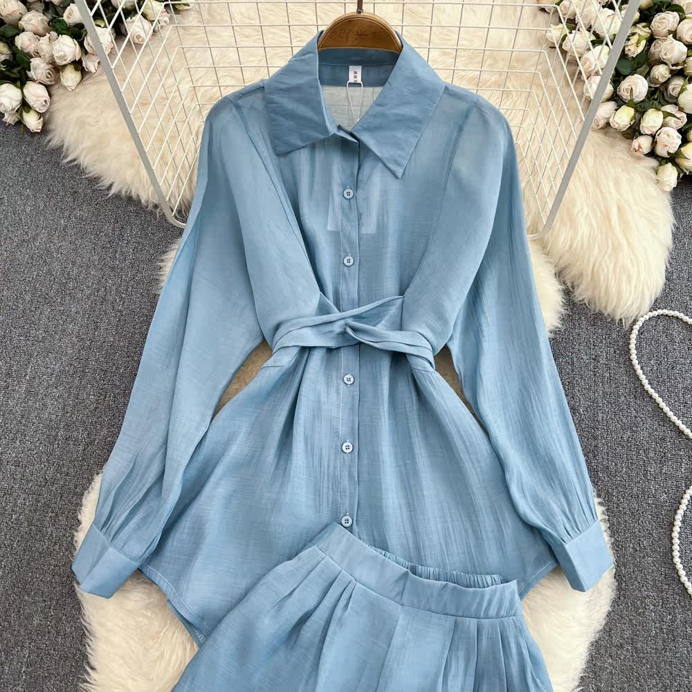 Комплект для отдыха, длинный лонгслив, приталенная рубашка, шорты, с рукавом, высокая талия, свободный крой