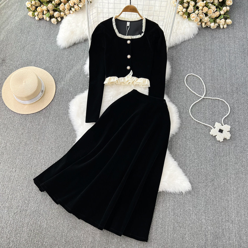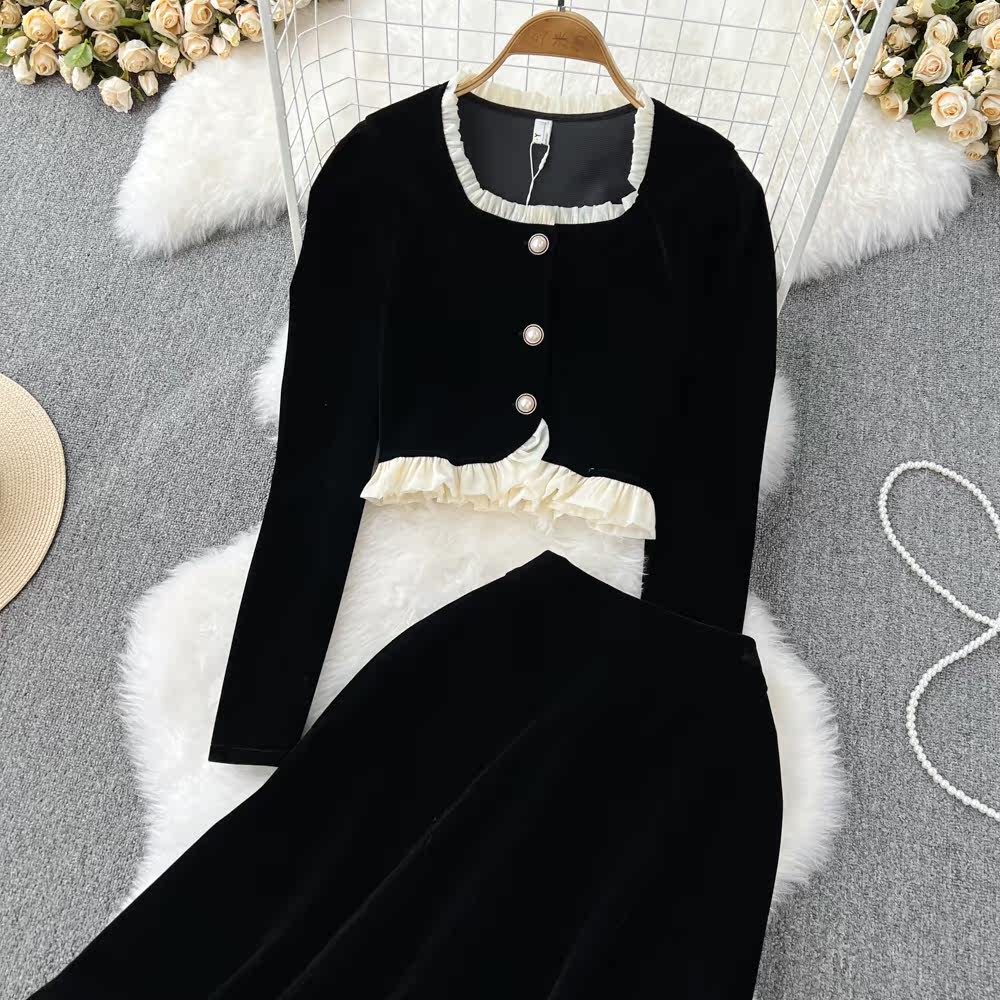 Демисезонная куртка, комплект, юбка, французский стиль, квадратный вырез, высокая талия
