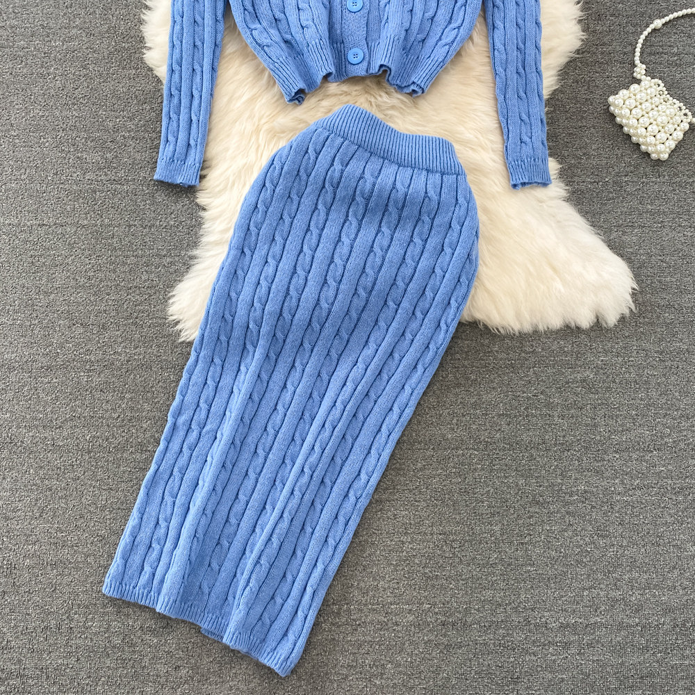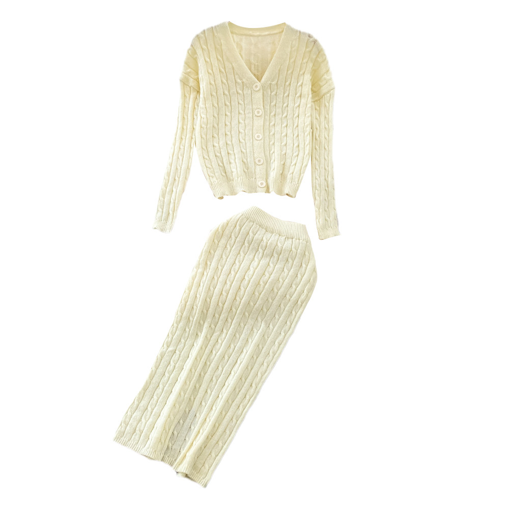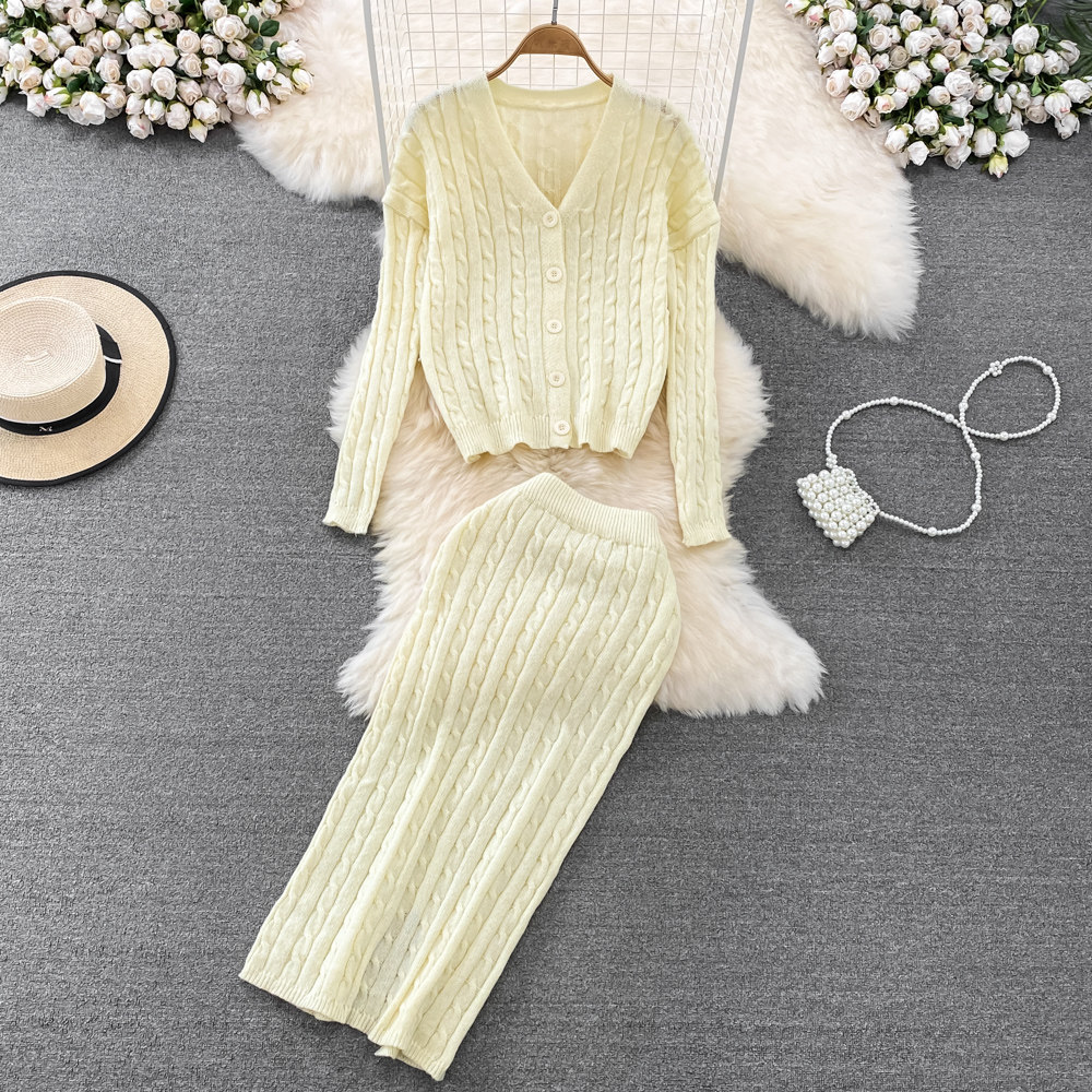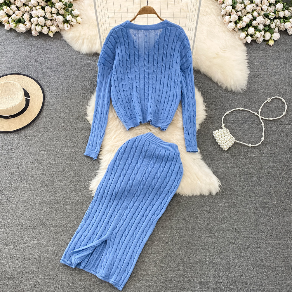 Комплект, трикотажный лонгслив, свитер, кардиган, длинная юбка, высокая талия, средней длины