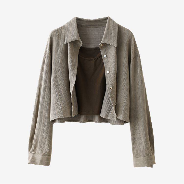 Короткая рубашка, комплект, жилет, свободный крой, эффект подтяжки