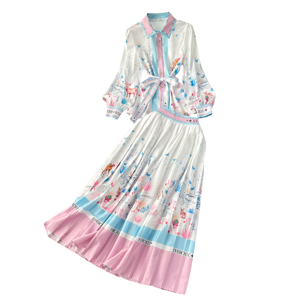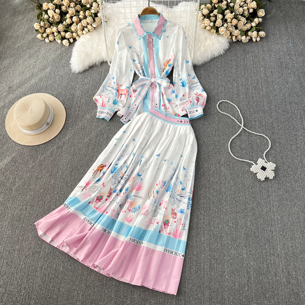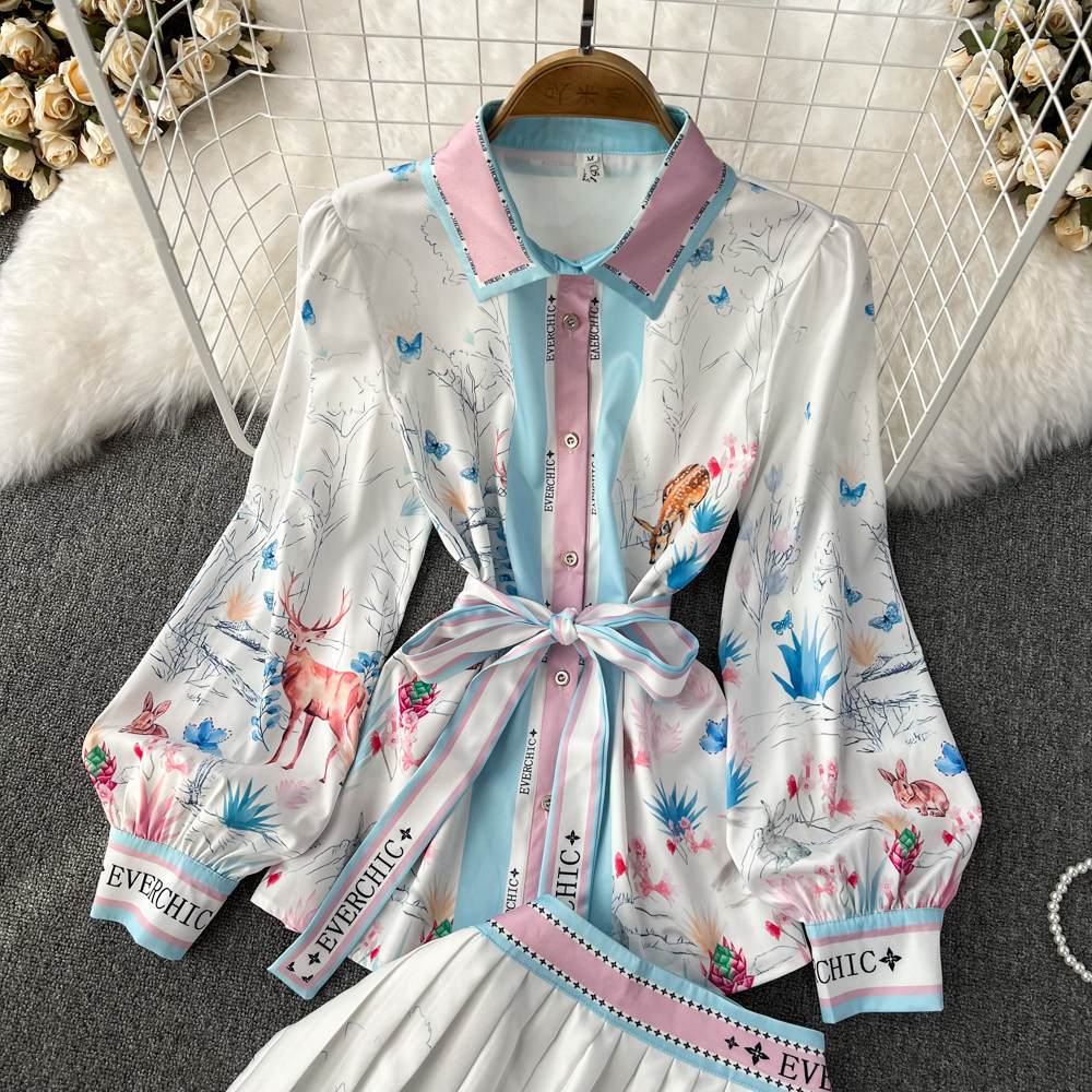 Комплект, лонгслив, рубашка, юбка в складку, свободный крой, высокая талия