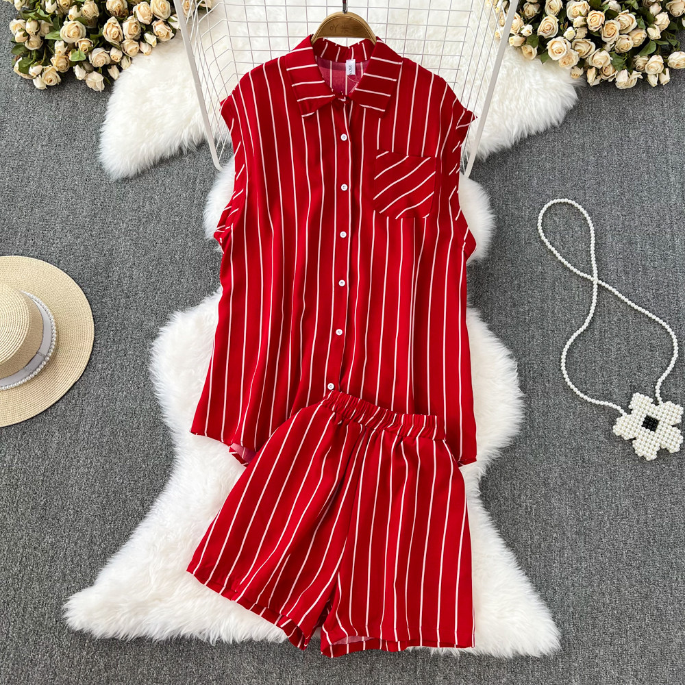 Ретро комплект, приталенные шорты без рукавов, штаны, высокая талия, свободный крой