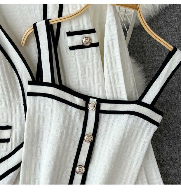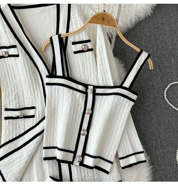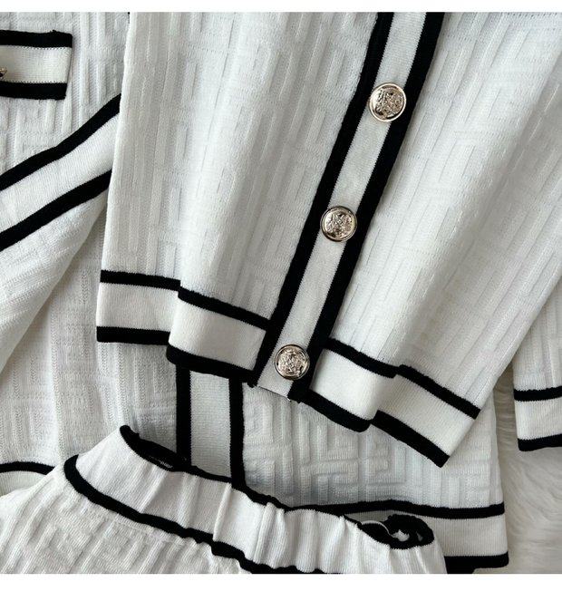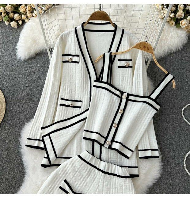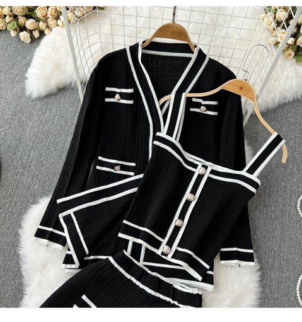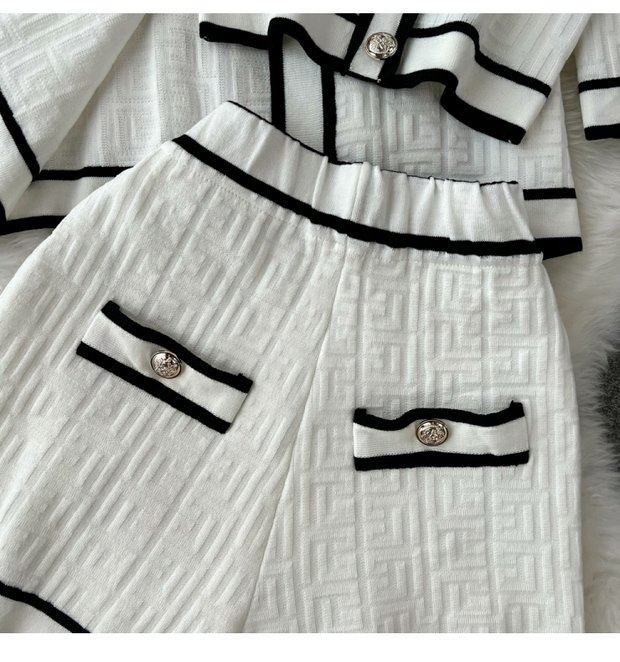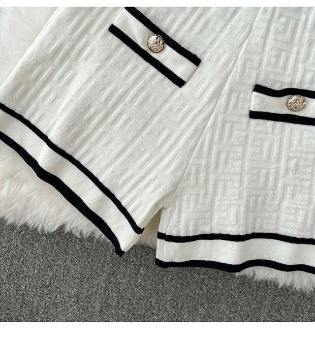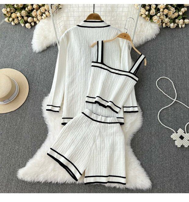 Комплект, трикотажный кардиган, топ с чашечками, шорты, в стиле Шанель, 3 предмета, высокая талия