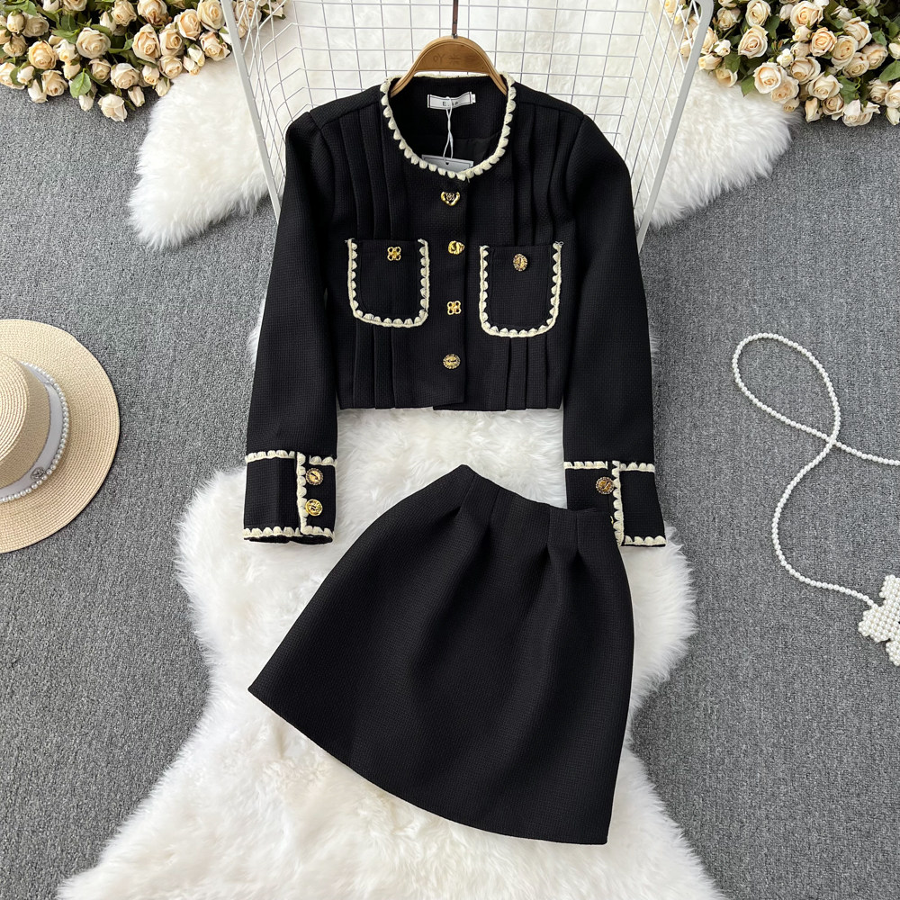 Комплект, короткая куртка, приталенная юбка, в стиле Шанель, изысканный стиль, высокая талия