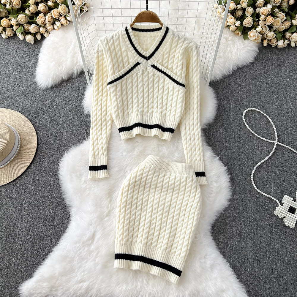 Комплект, короткая трикотажная поясная сумка с косичкой, юбка, V-образный вырез, высокая талия