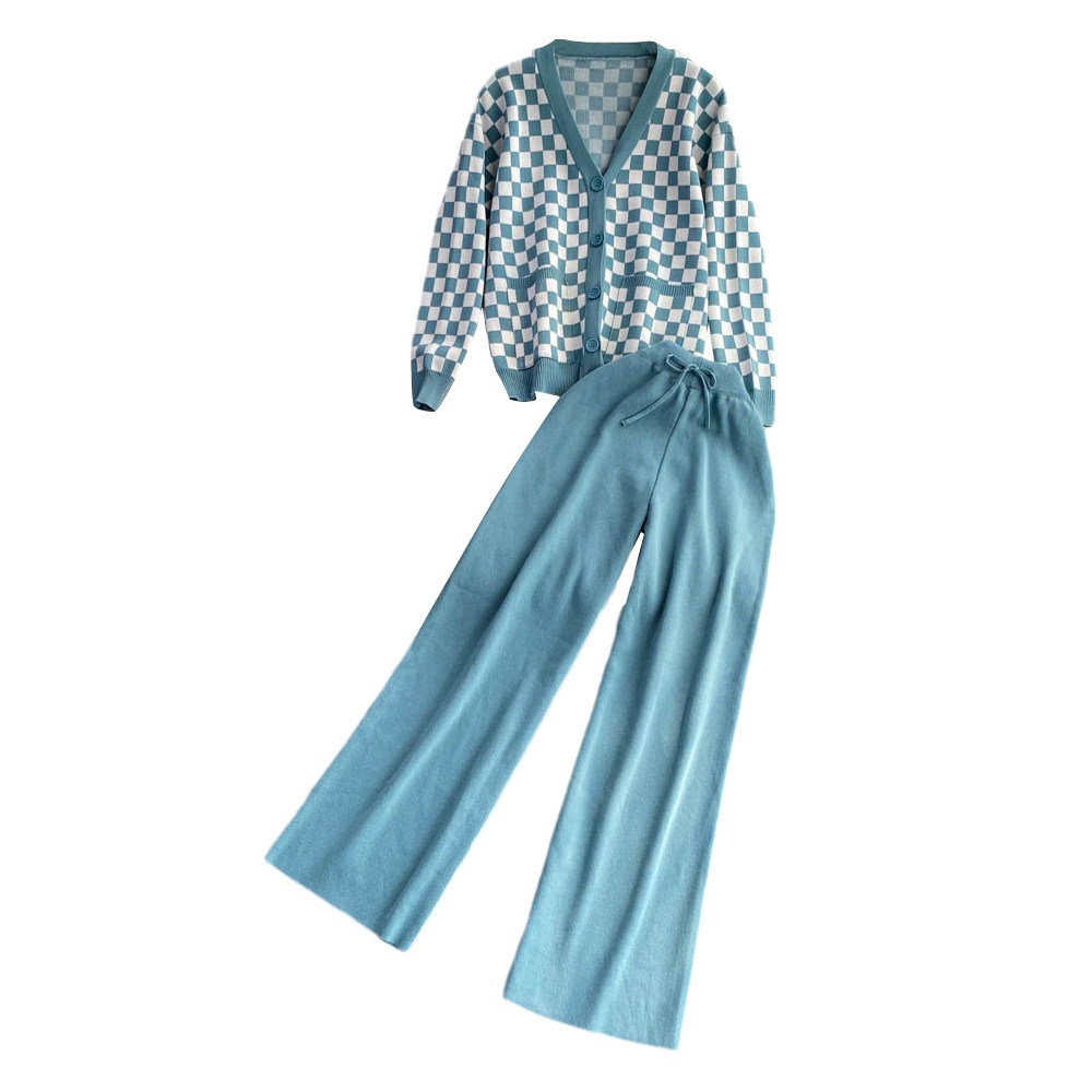 Комплект для отдыха, шахматы, трикотажный кардиган, штаны, высокая талия