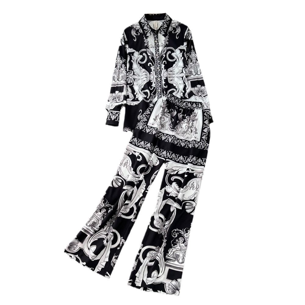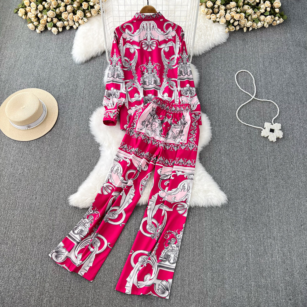 Комплект, лонгслив, рубашка, штаны, изысканный стиль, яркий броский стиль, высокая талия, свободный прямой крой