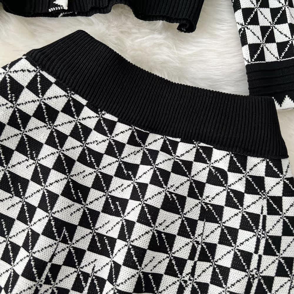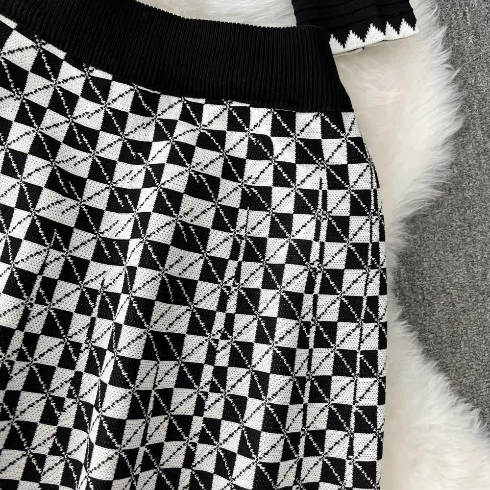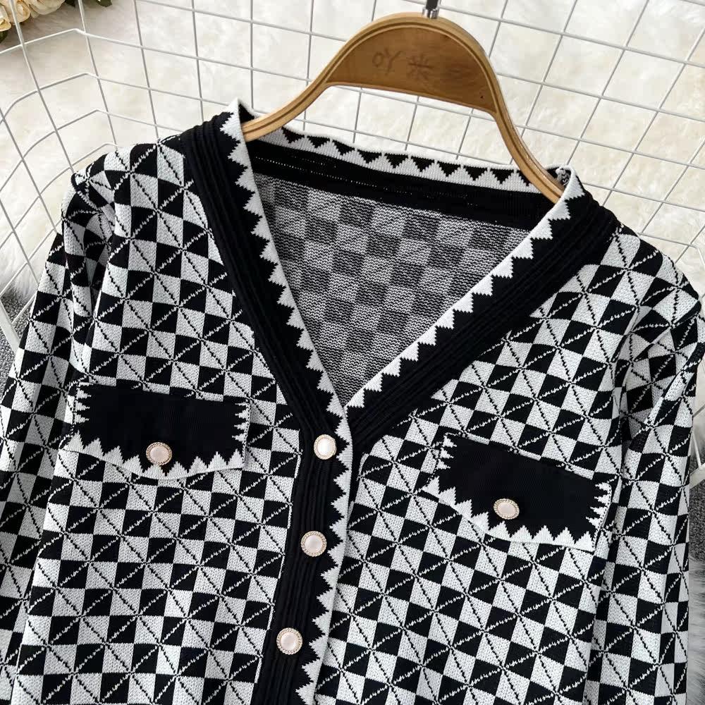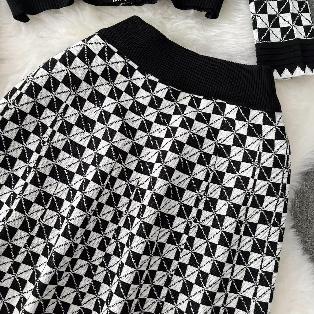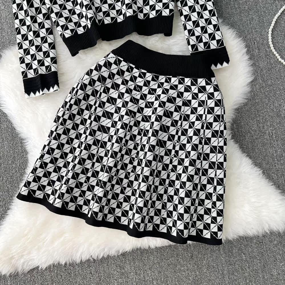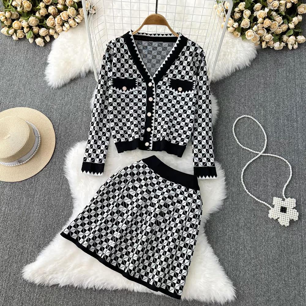 Комплект, трикотажный кардиган, юбка, в стиле Шанель, V-образный вырез, высокая талия