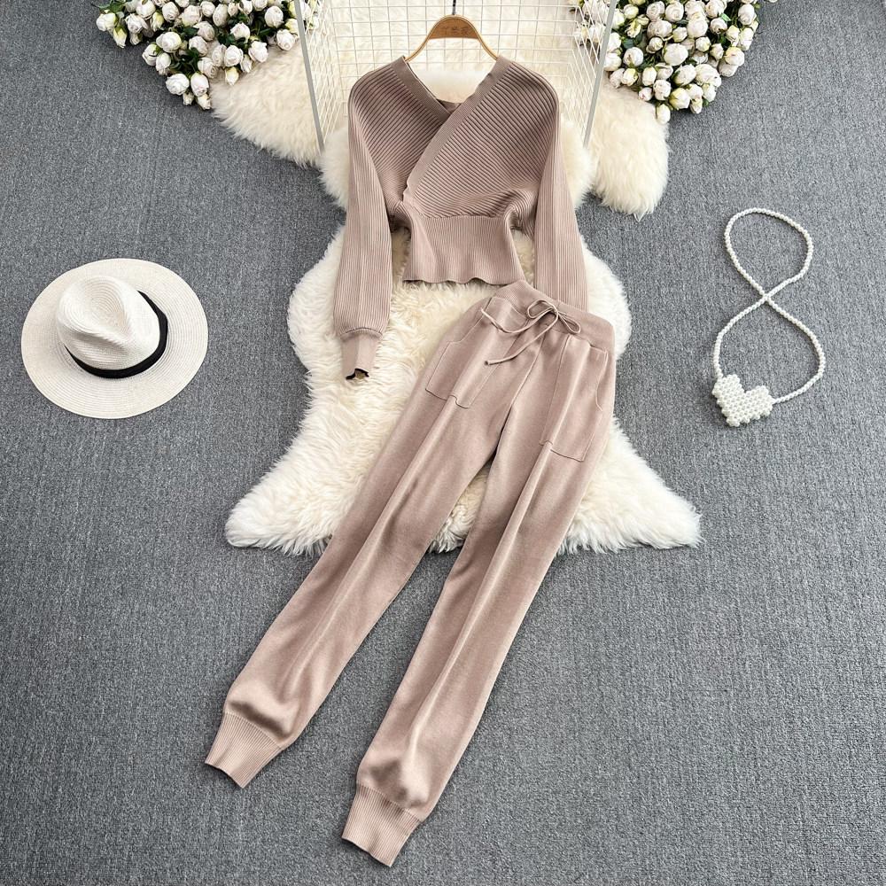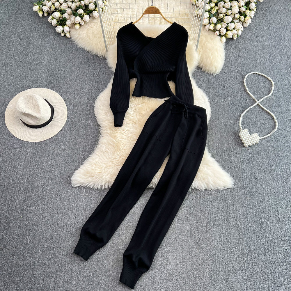Сексуальный комплект, приталенный корсет, трикотажные штаны, V-образный вырез, высокая талия