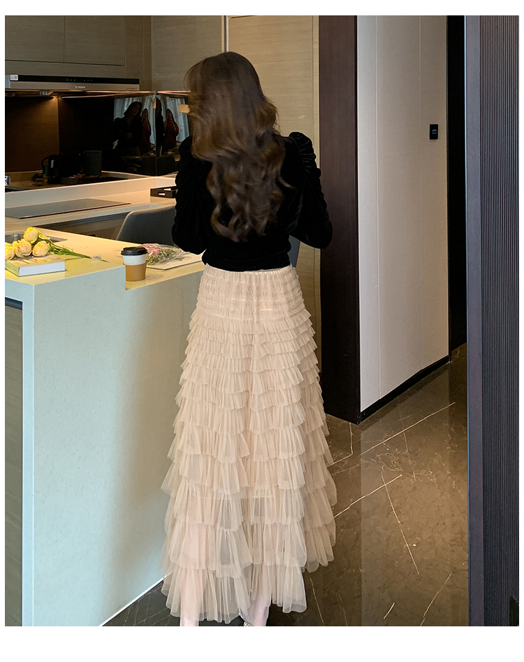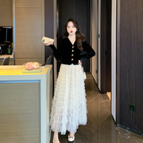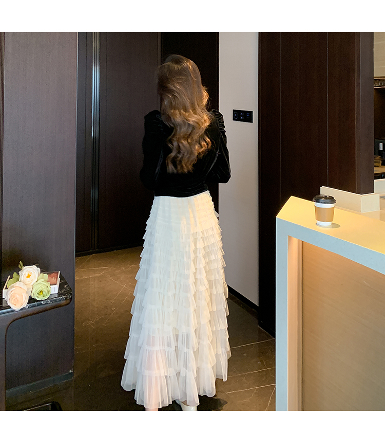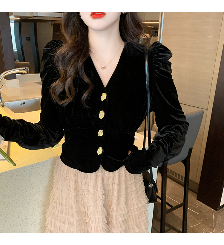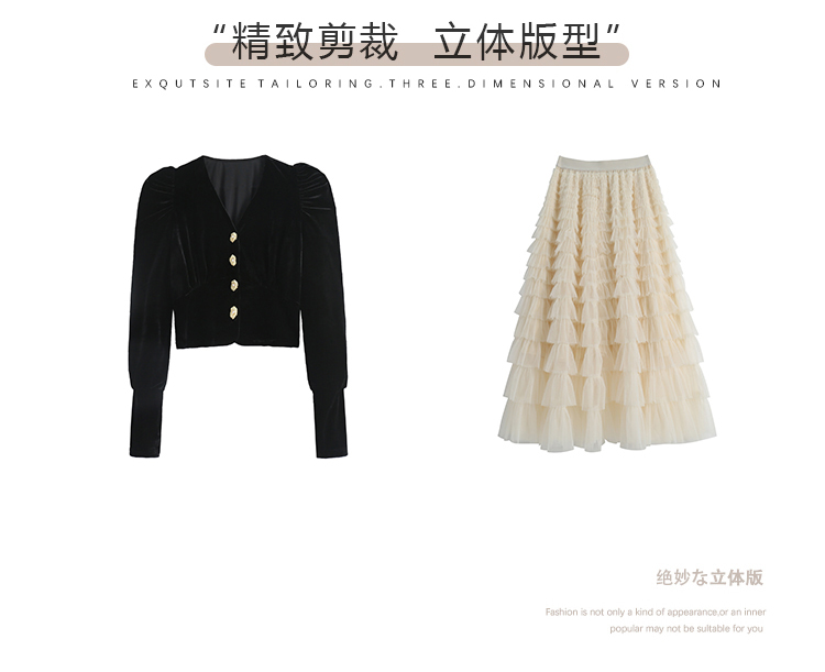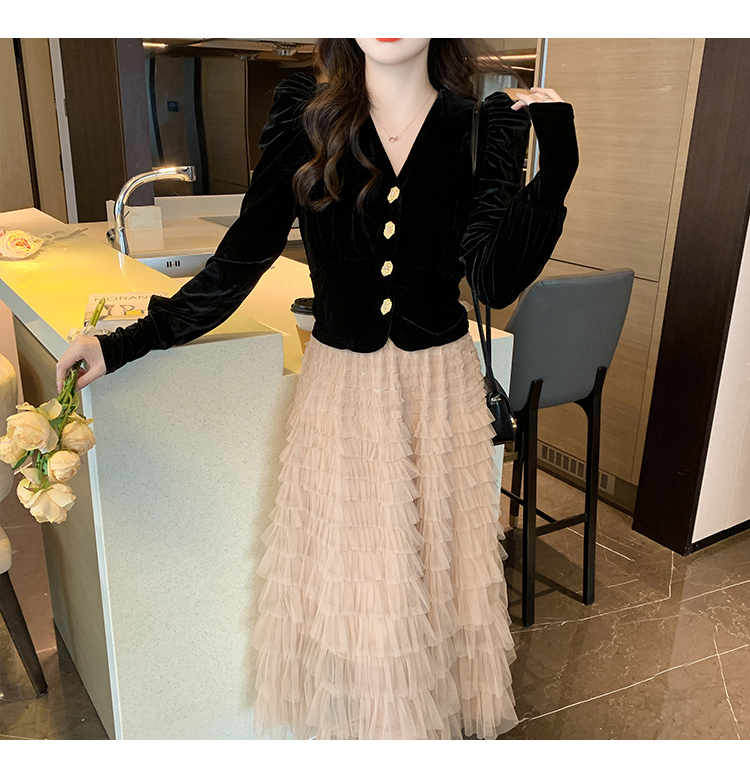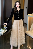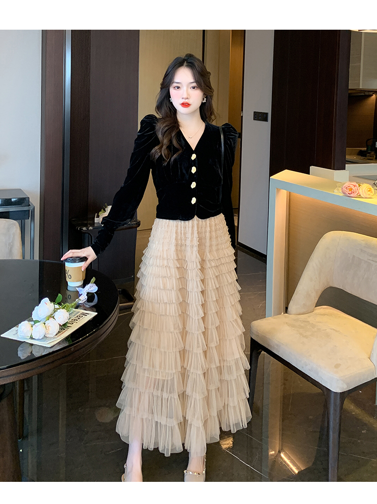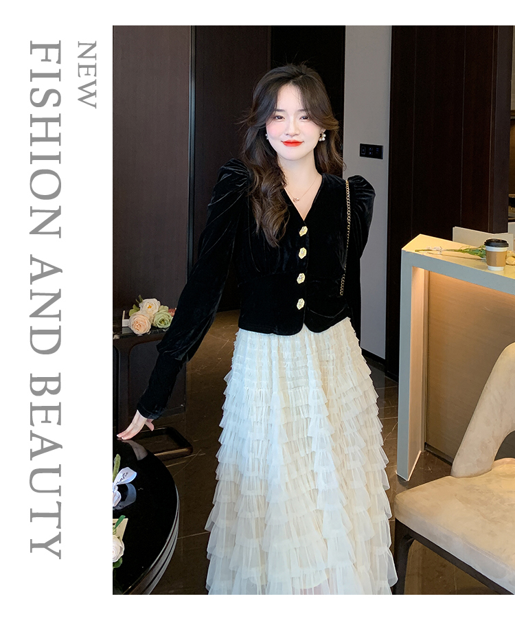Демисезонный бархатный комплект, длинная юбка, французский стиль, V-образный вырез