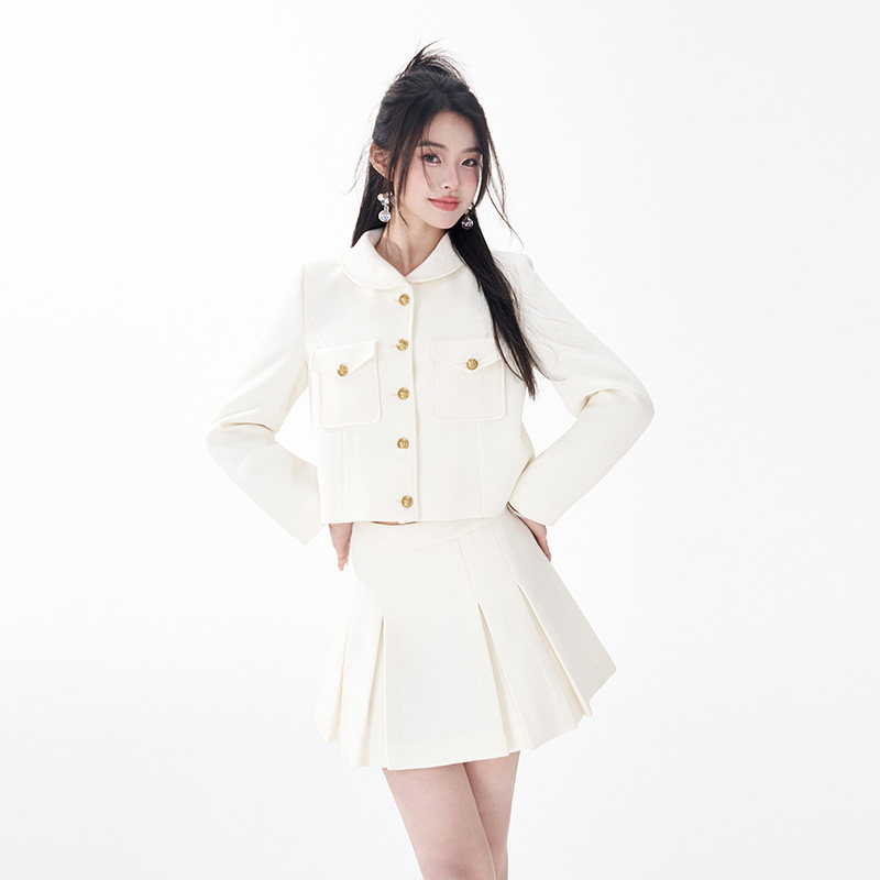 Оригинальный белый комплект, юбка в складку, в стиле Шанель