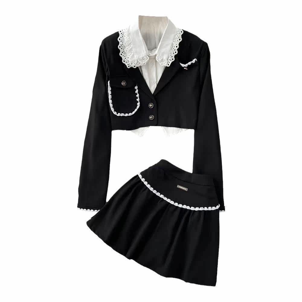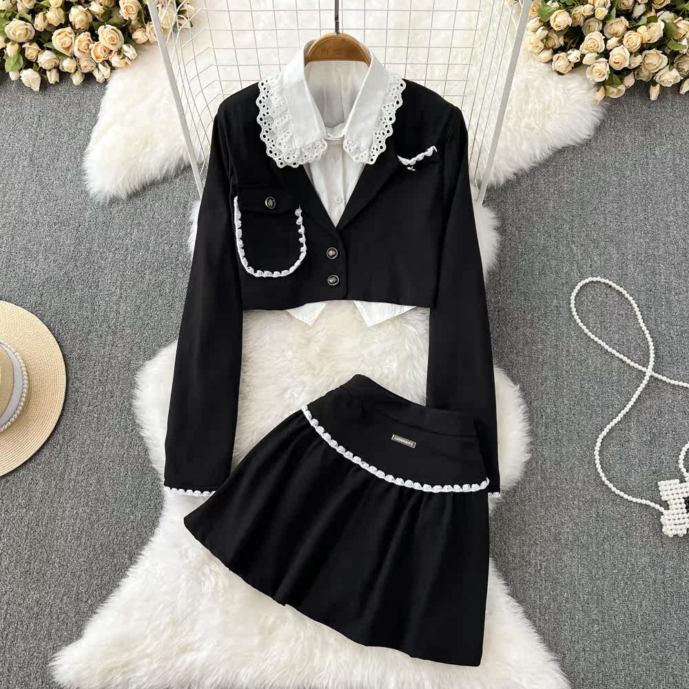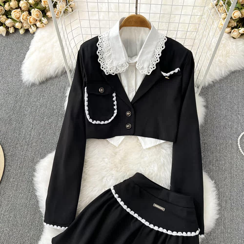 Комплект, рубашка, приталенный костюм, юбка в складку, в стиле Шанель, 3 предмета, А-силуэт
