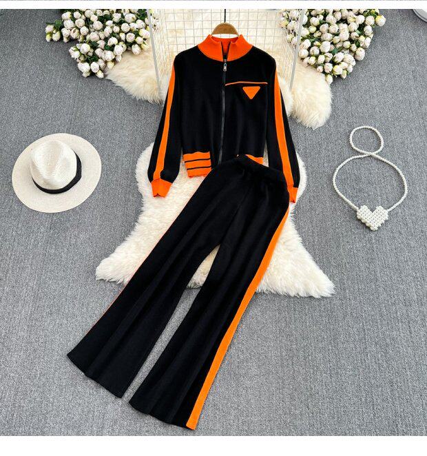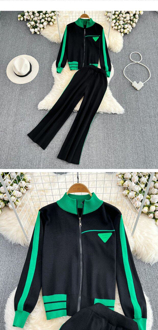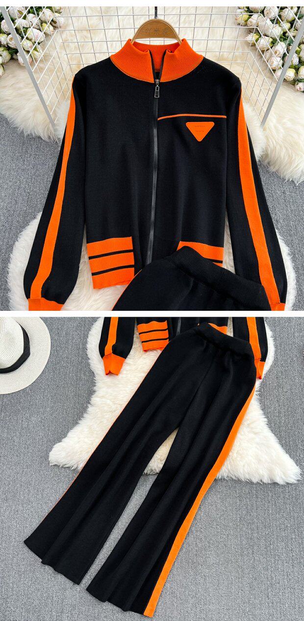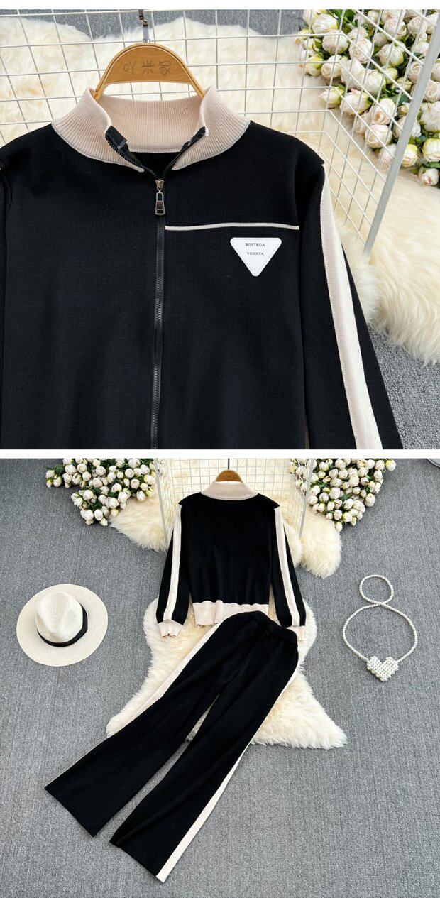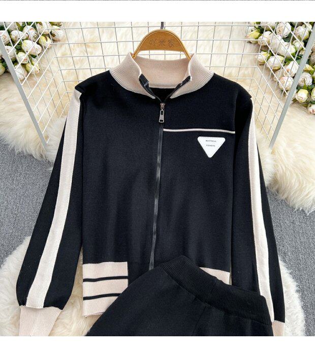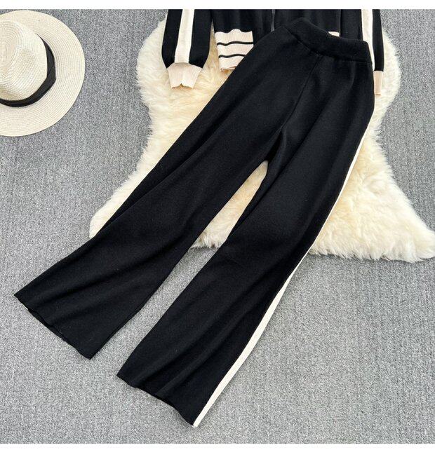 Спортивный комплект для отдыха, трикотажный кардиган, штаны, высокая талия, свободный прямой крой