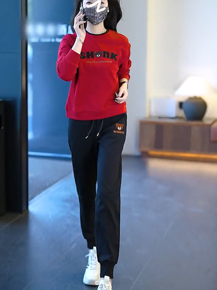 Осенняя толстовка, штаны, утепленный модный комплект, по фигуре, большой размер